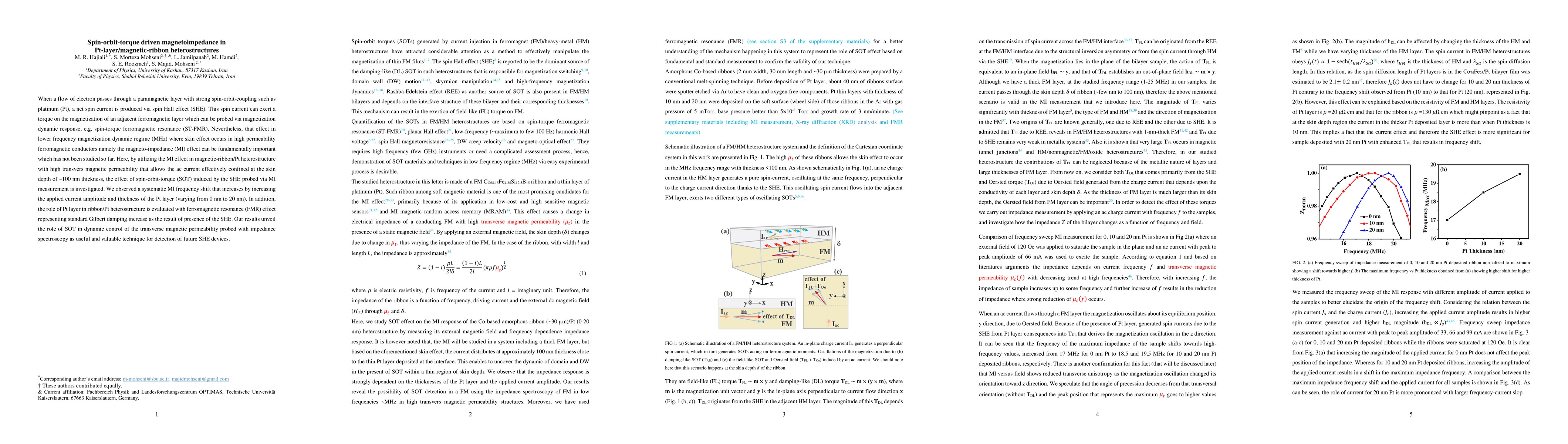 Researchers investigate spin-orbit torque effects on magnetoimpedance in Pt-layer/magnetic-ribbon heterostructures, revealing a systematic frequency shift with applied current amplitude and Pt layer thickness.