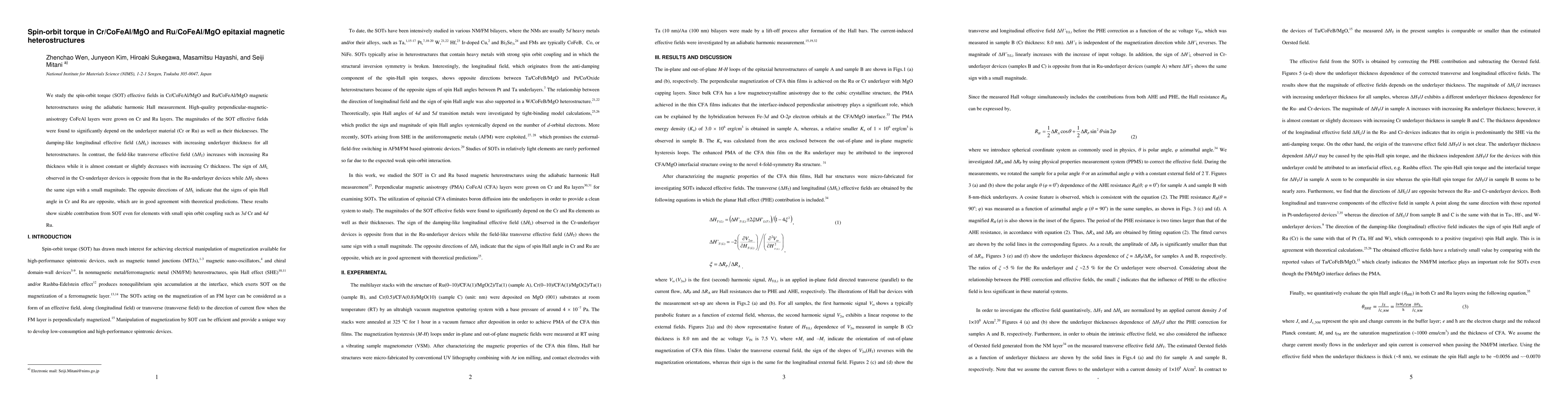 This study investigates the spin-orbit torque (SOT) in Cr/CoFeAl/MgO and Ru/CoFeAl/MgO magnetic heterostructures, revealing significant dependence of SOT effective fields on the underlayer material and thickness. The damping-like longitudinal field increases with underlayer thickness, while the field-like transverse field behavior varies with Cr and Ru thicknesses, indicating different spin Hall angles for Cr and Ru.