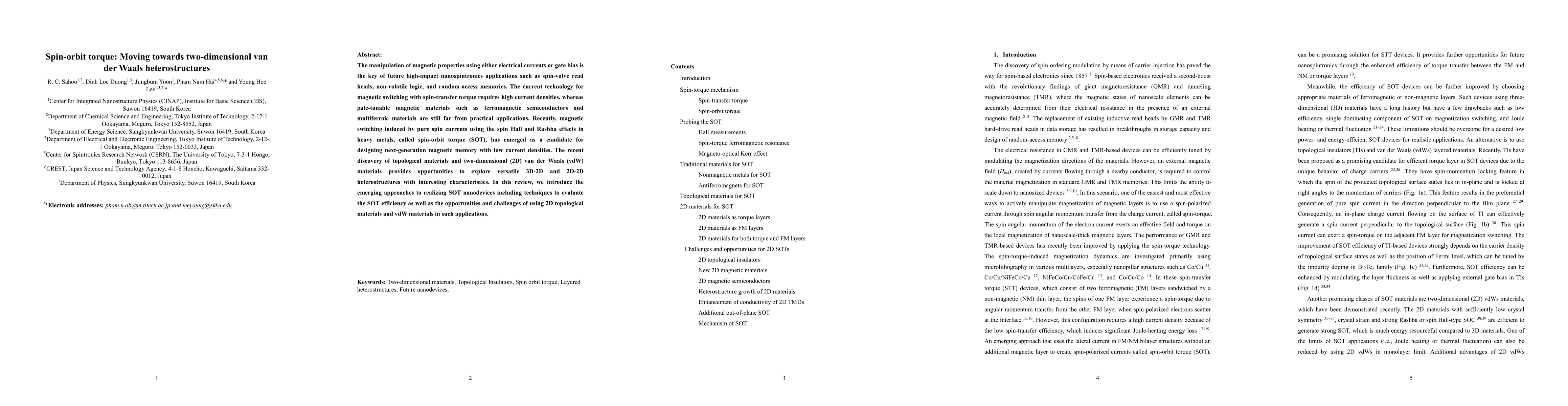 This paper reviews the potential of spin-orbit torque (SOT) for low-current magnetic switching in future nanospintronics, focusing on the advantages of using 2D van der Waals heterostructures. It discusses the challenges and opportunities in integrating 2D topological materials for next-generation magnetic memory devices.