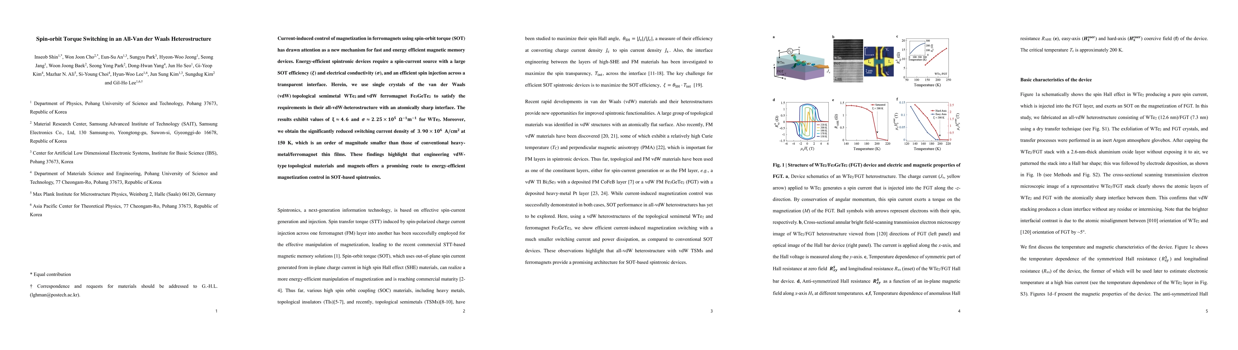 This paper demonstrates current-induced magnetization switching in an all-van der Waals heterostructure using spin-orbit torque, achieving a significantly reduced switching current density and high spin-current efficiency, suggesting a promising route for energy-efficient spintronic devices.
