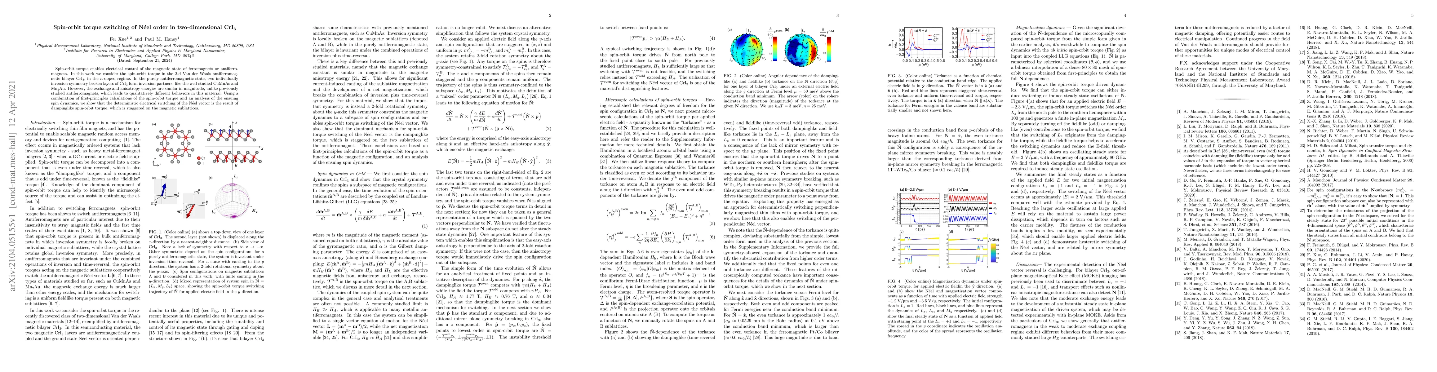 Spin-orbit torque enables electrical control of the magnetic state of ferromagnets or antiferromagnets. In this work we consider the spin-orbit torque in the 2-d Van der Waals antiferromagnetic bilayer CrI$_3$, in the $n$-doped regime. In the purely antiferromagnetic state, two individually inversion-symmetry broken layers of CrI$_3$ form inversion partners, like the well-studied CuMnAs and Mn$_2$Au. However, the exchange and anisotropy energies are similar in magnitude, unlike previously studied antiferromagnets, which leads to qualitatively different behaviors in this material. Using a combination of first-principles calculations of the spin-orbit torque and an analysis of the ensuing spin dynamics, we show that the deterministic electrical switching of the N\'eel vector is the result of dampinglike spin-orbit torque, which is staggered on the magnetic sublattices.