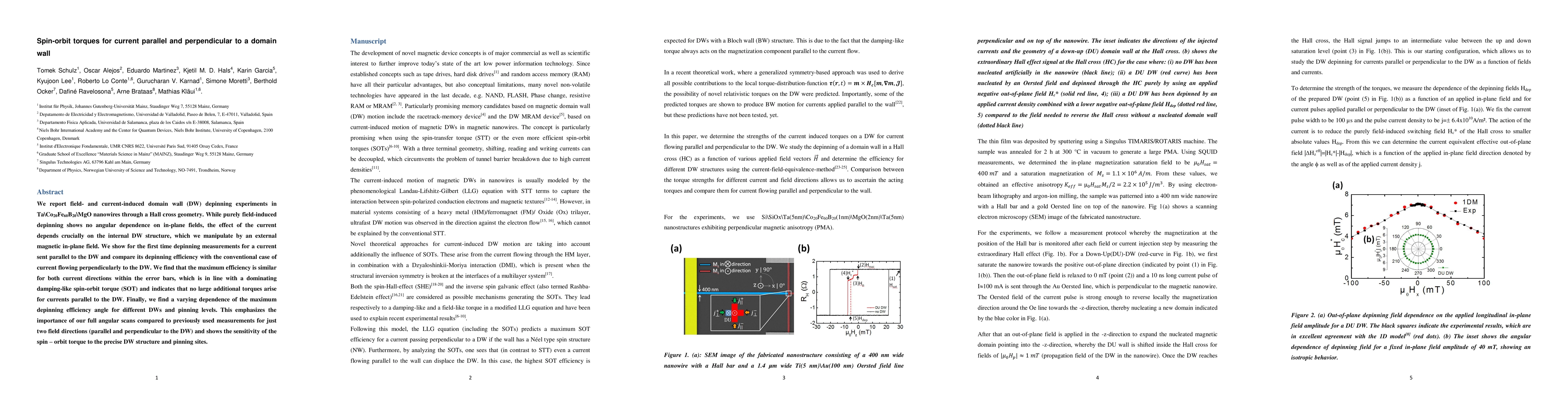 We report field- and current-induced domain wall (DW) depinning experiments in Ta/Co20Fe60B20/MgO nanowires through a Hall cross geometry. While purely field-induced depinning shows no angular dependence on in-plane fields, the effect of the current depends crucially on the internal DW structure, which we manipulate by an external magnetic in-plane field. We show for the first time depinning measurements for a current sent parallel to the DW and compare its depinning efficiency with the conventional case of current flowing perpendicularly to the DW. We find that the maximum efficiency is similar for both current directions within the error bars, which is in line with a dominating damping-like spin-orbit torque (SOT) and indicates that no large additional torques arise for currents parallel to the DW. Finally, we find a varying dependence of the maximum depinning efficiency angle for different DWs and pinning levels. This emphasizes the importance of our full angular scans compared to previously used measurements for just two field directions (parallel and perpendicular to the DW) and shows the sensitivity of the spin-orbit torque to the precise DW structure and pinning sites.