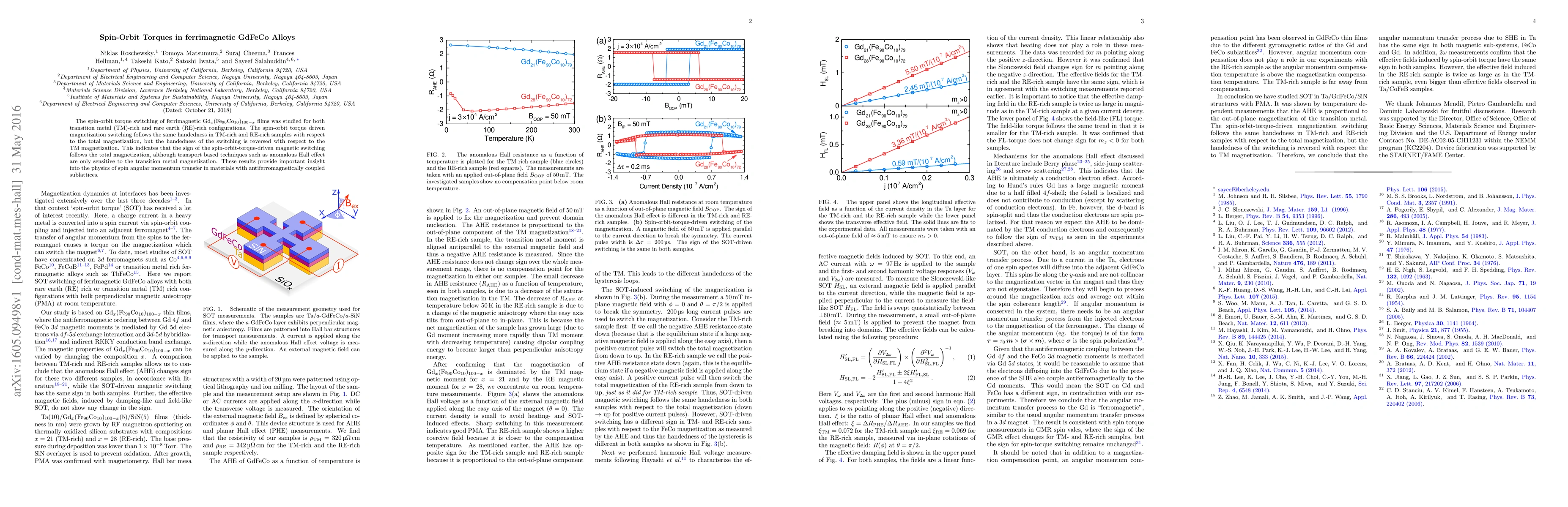 This study investigates spin-orbit torque switching in ferrimagnetic GdFeCo alloys, revealing that while the switching direction aligns with total magnetization, it inversely correlates with transition metal magnetization. These findings offer significant insights into spin angular momentum transfer in materials with antiferromagnetically coupled sublattices.