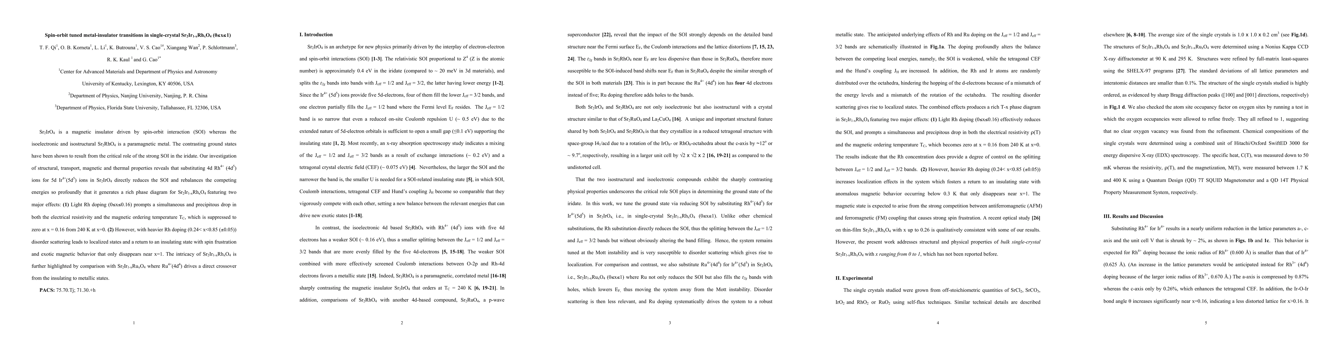 Substituting 4d ions for 5d ions in Sr2IrO4 reduces spin-orbit interaction, creating a rich phase diagram with two major effects: a sudden drop in resistivity and magnetic ordering temperature, followed by the introduction of localized states and exotic magnetic behavior with heavier doping.