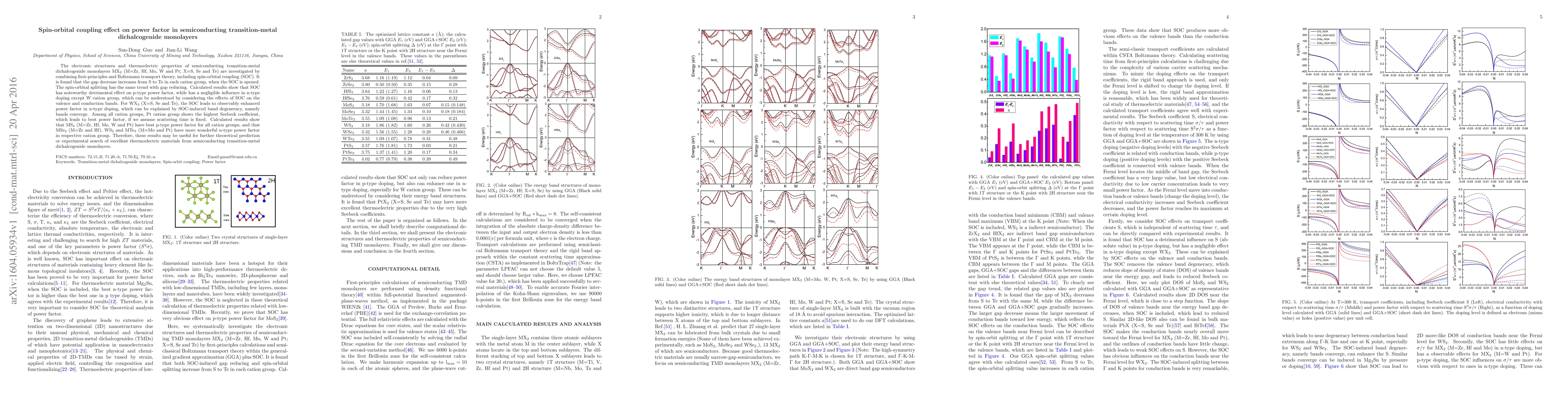 This study investigates the impact of spin-orbital coupling (SOC) on the thermoelectric properties of semiconducting transition-metal dichalcogenide monolayers. It finds that SOC significantly reduces p-type power factor but enhances n-type power factor in certain materials, particularly $\mathrm{WX_2}$. The best p-type power factor is found in $\mathrm{MS_2}$ materials, while $\mathrm{MSe_2}$ and $\mathrm{MTe_2}$ show superior n-type performance.