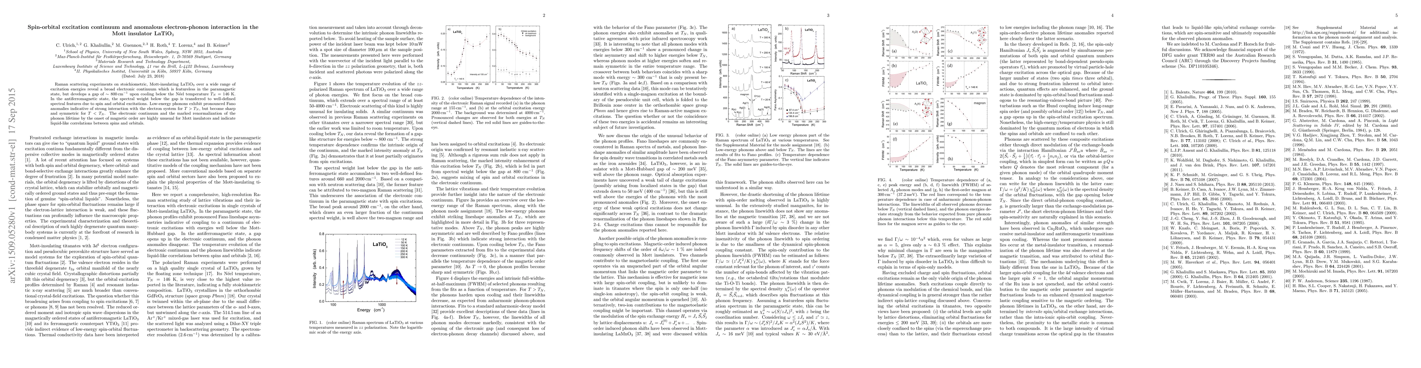 This paper reports on Raman scattering experiments in the Mott insulator LaTiO$_3$, revealing a broad electronic continuum that develops a gap upon cooling below the Néel temperature, indicating strong spin-orbital coupling. Low-energy phonons show Fano anomalies, suggesting anomalous electron-phonon interactions above the Néel temperature, which normalize below it.