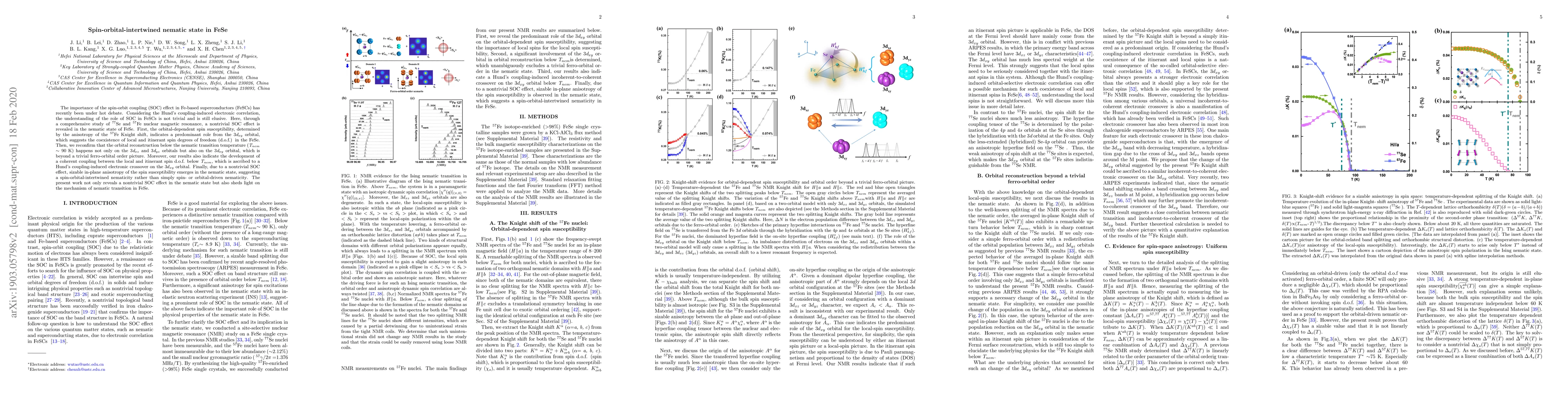 This study reveals a nontrivial spin-orbit coupling effect in the nematic state of FeSe through nuclear magnetic resonance, highlighting the role of the 3dxy orbital and showing a coherent coupling between local and itinerant spin degrees of freedom. It demonstrates spin-orbital-intertwined nematicity, offering insights into the mechanism of the nematic transition in FeSe.
