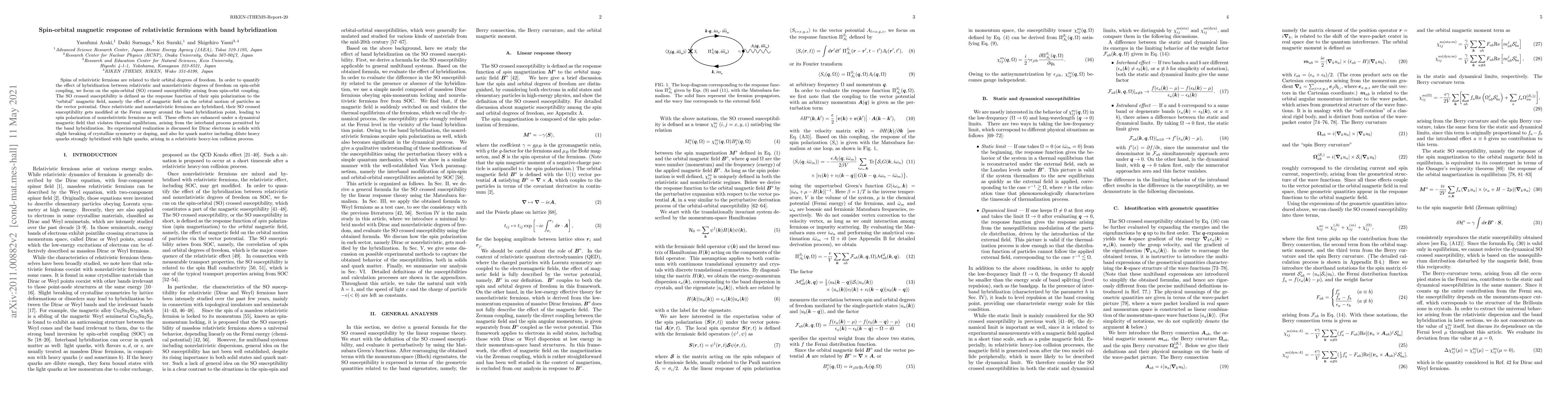 Spins of relativistic fermions are related to their orbital degrees of freedom. In order to quantify the effect of hybridization between relativistic and nonrelativistic degrees of freedom on spin-orbit coupling, we focus on the spin-orbital (SO) crossed susceptibility arising from spin-orbit coupling. The SO crossed susceptibility is defined as the response function of their spin polarization to the "orbital" magnetic field, namely the effect of magnetic field on the orbital motion of particles as the vector potential. Once relativistic and nonrelativistic fermions are hybridized, their SO crossed susceptibility gets modified at the Fermi energy around the band hybridization point, leading to spin polarization of nonrelativistic fermions as well. These effects are enhanced under a dynamical magnetic field that violates thermal equilibrium, arising from the interband process permitted by the band hybridization. Its experimental realization is discussed for Dirac electrons in solids with slight breaking of crystalline symmetry or doping, and also for quark matter including dilute heavy quarks strongly hybridized with light quarks, arising in a relativistic heavy-ion collision process.