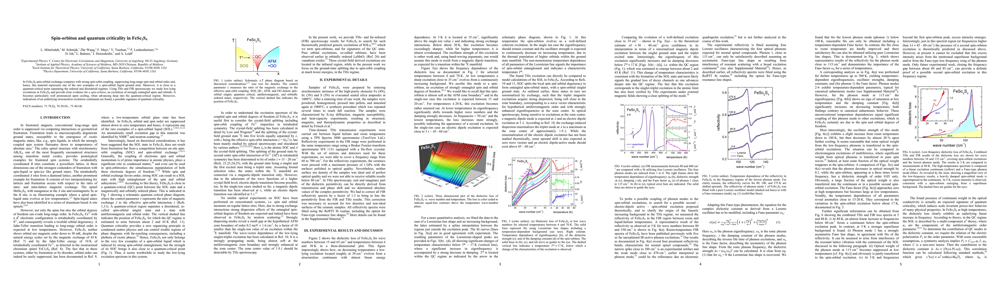FeSc2S4 exhibits a spin-orbital liquid ground state due to competing spin-orbital exchange and strong spin-orbit coupling, and is near a quantum-critical point. THz and FIR spectroscopy reveals a spin-orbiton, a signature of entangled spin and orbital excitations, which becomes prominent as the material approaches the quantum-critical regime.