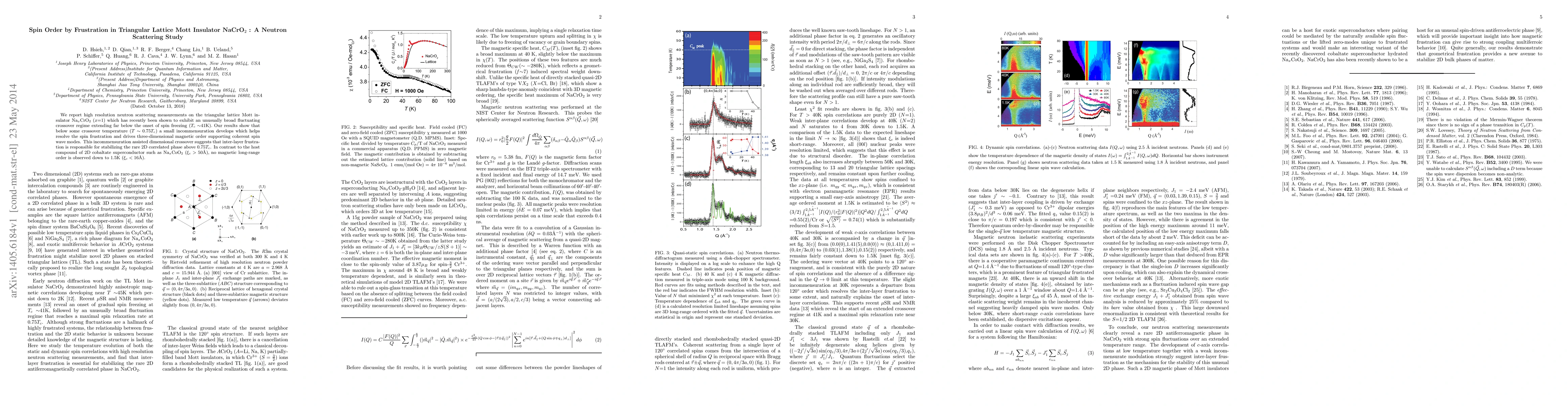 We report high resolution neutron scattering measurements on the triangular lattice Mott insulator Na$_x$CrO$_2$ ($x$=1) which has recently been shown to exhibit an unusually broad fluctuating crossover regime extending far below the onset of spin freezing ($T_c\sim$41K). Our results show that below some crossover temperature ($T\sim0.75T_c$) a small incommensuration develops which helps resolve the spin frustration and drives three-dimensional magnetic order supporting coherent spin wave modes. This incommensuration assisted dimensional crossover suggests that inter-layer frustration is responsible for stabilizing the rare 2D correlated phase above 0.75$T_c$. In contrast to the host compound of 2D cobaltate superconductor such as Na$_x$CoO$_2$ ($\xi_c>50$\AA), no magnetic long-range order is observed down to 1.5K ($\xi_c<16$\AA).
