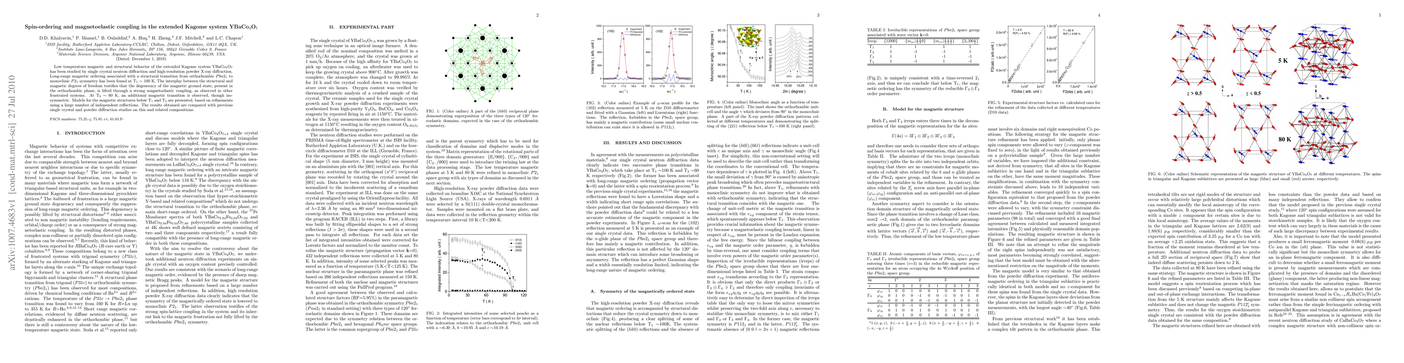 This paper investigates the magnetic and structural transitions in YBaCo4O7 at low temperatures, revealing long-range magnetic ordering linked to a structural phase transition from orthorhombic to monoclinic symmetry at ~100 K. A secondary magnetic transition is observed at ~60 K, highlighting strong magnetoelastic coupling and the lifting of magnetic ground state degeneracy.