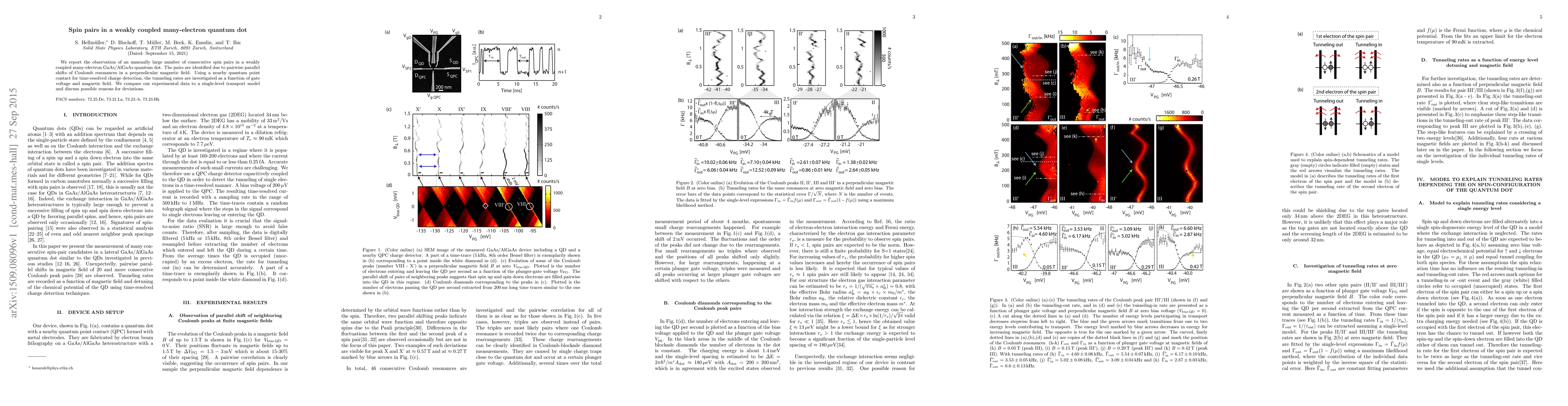 We report the observation of an unusually large number of consecutive spin pairs in a weakly coupled many-electron GaAs/AlGaAs quantum dot. The pairs are identified due to pairwise parallel shifts of Coulomb resonances in a perpendicular magnetic field. Using a nearby quantum point contact for time-resolved charge detection, the tunneling rates are investigated as a function of gate voltage and magnetic field. We compare our experimental data to a single-level transport model and discuss possible reasons for deviations.