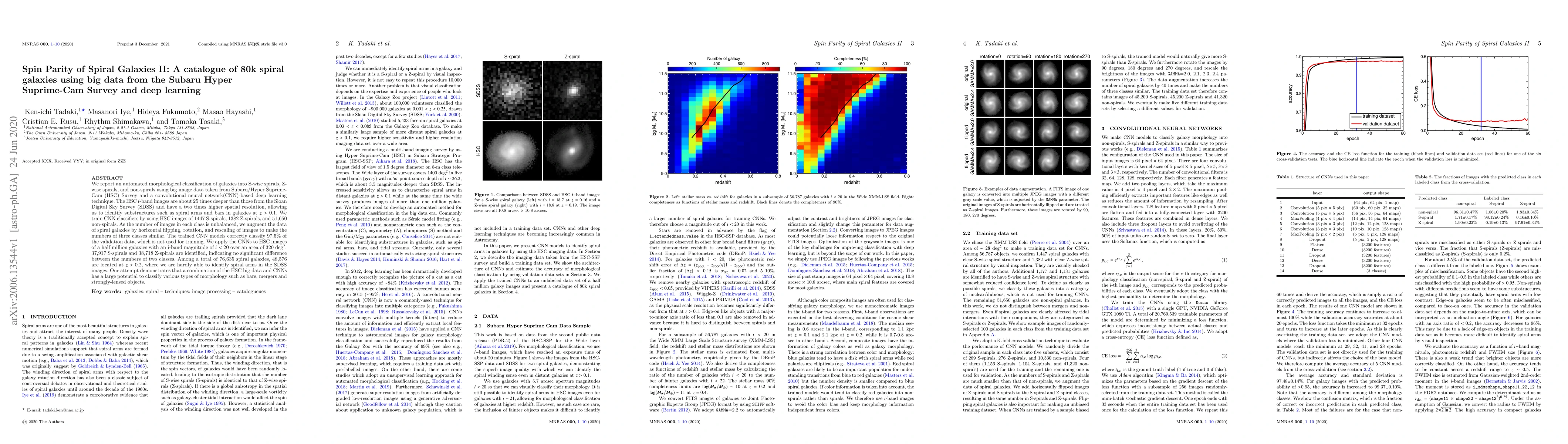 This paper presents an automated classification of 80k spiral galaxies using big data from the Subaru Hyper Suprime-Cam Survey and convolutional neural networks (CNN). The study identifies S-wise and Z-wise spirals with high accuracy, revealing detailed substructures in galaxies at higher redshifts than previously possible.