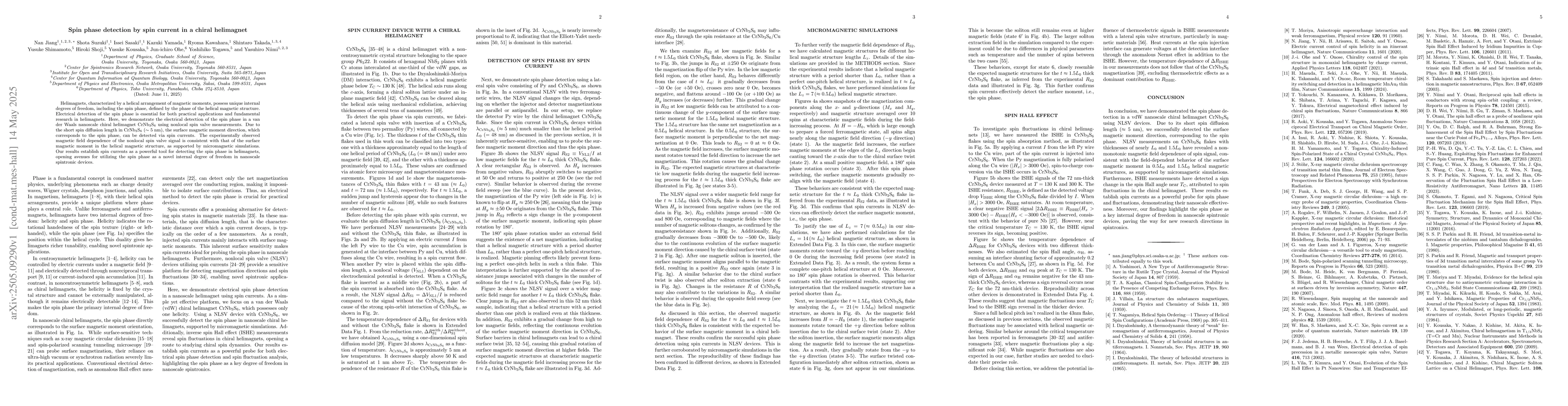 The study presents a method for spin phase detection using spin currents in a chiral helimagnet, CrNb3S6, validated by micromagnetic simulations.