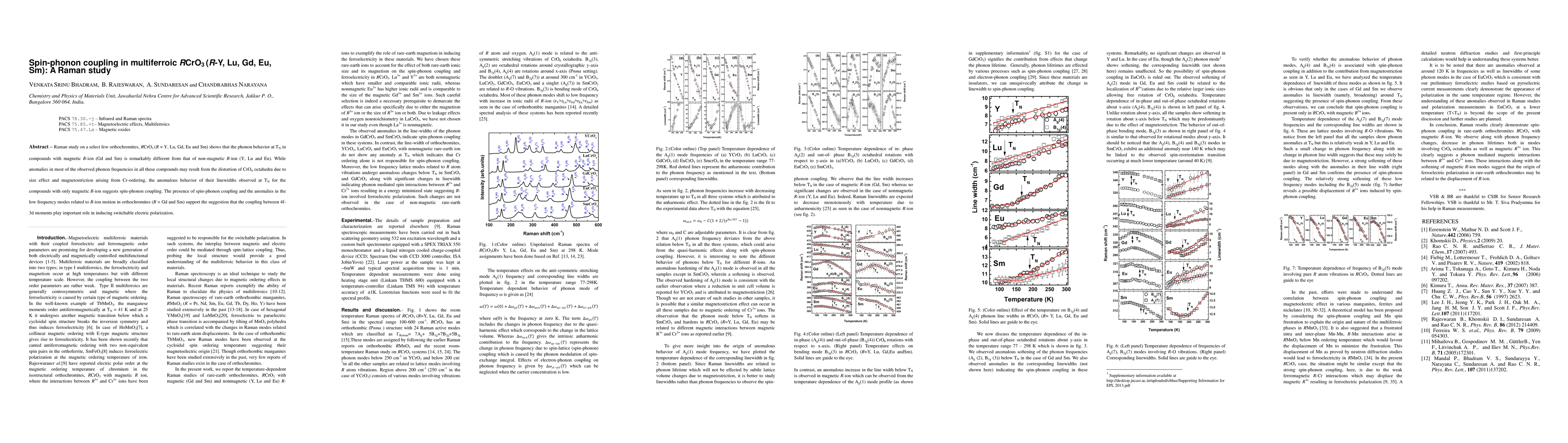 This paper presents a Raman study revealing significant spin-phonon coupling in magnetic orthochromites RCrO$_3$ (R = Gd, Sm) compared to non-magnetic counterparts (R = Y, Lu, Eu). Anomalies in phonon linewidths at the transition temperature indicate the influence of 4f-3d moment coupling on electric polarization.