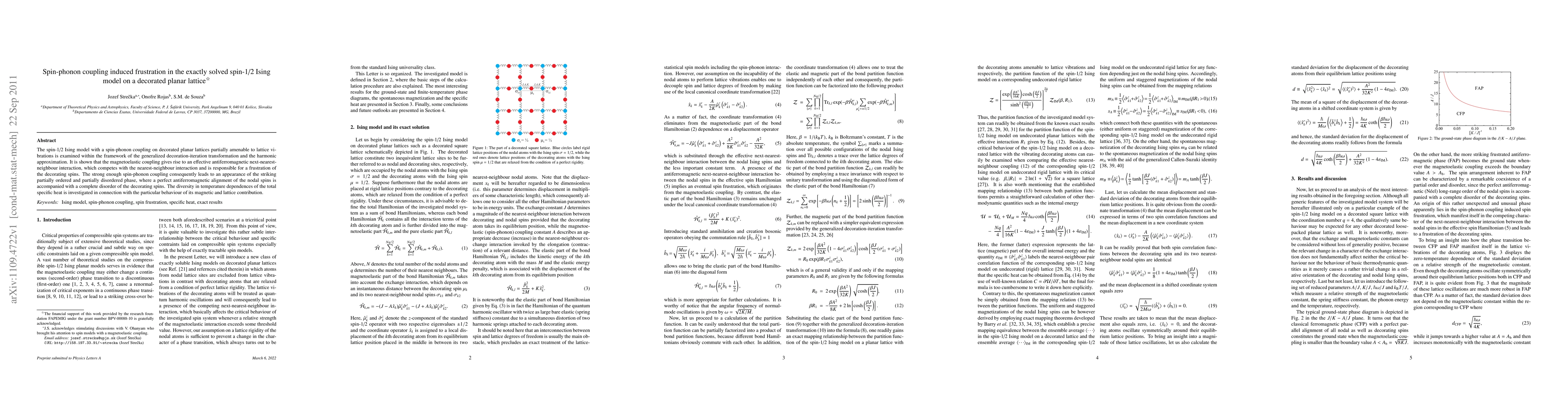 This paper explores the spin-1/2 Ising model on decorated planar lattices with spin-phonon coupling, revealing that magnetoelastic interactions induce frustration and lead to a partially ordered and disordered phase. The study highlights the competition between nearest-neighbour and next-nearest-neighbour interactions and investigates the temperature dependence of the specific heat.