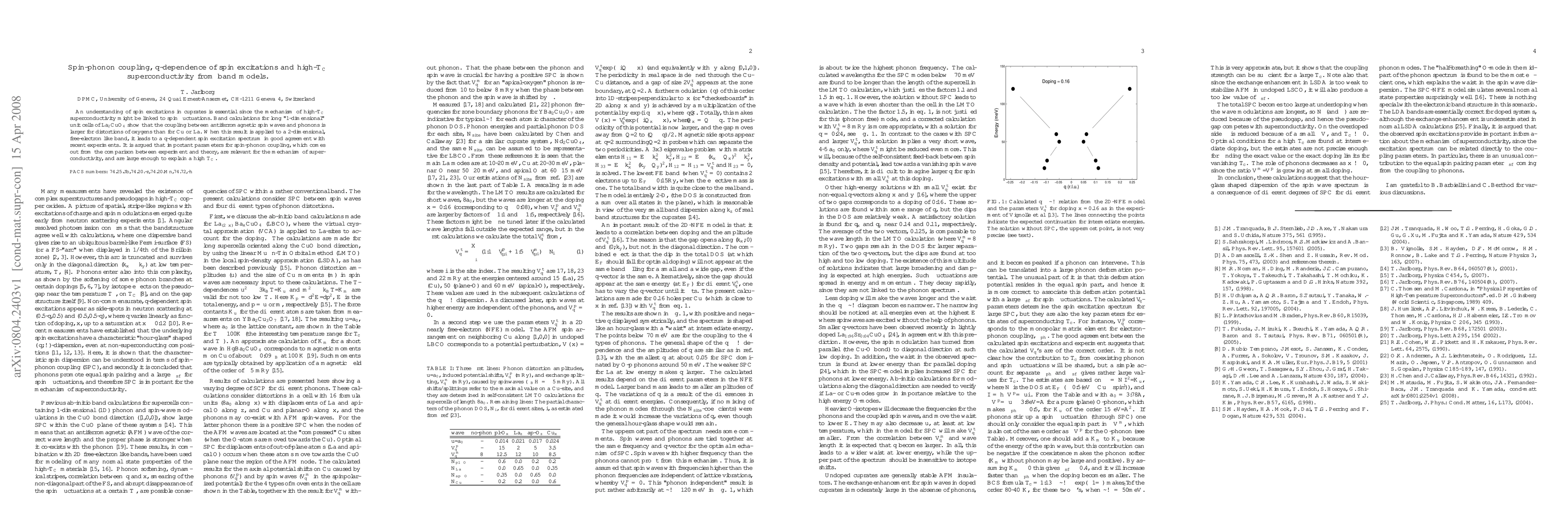 This paper investigates the spin-phonon coupling in cuprates, finding that oxygen distortions have a stronger coupling effect compared to Cu or La. The study uses band calculations to predict a q-dependent spin excitation spectrum that aligns with experimental observations, suggesting that these spin-phonon interactions are crucial for high-temperature superconductivity.