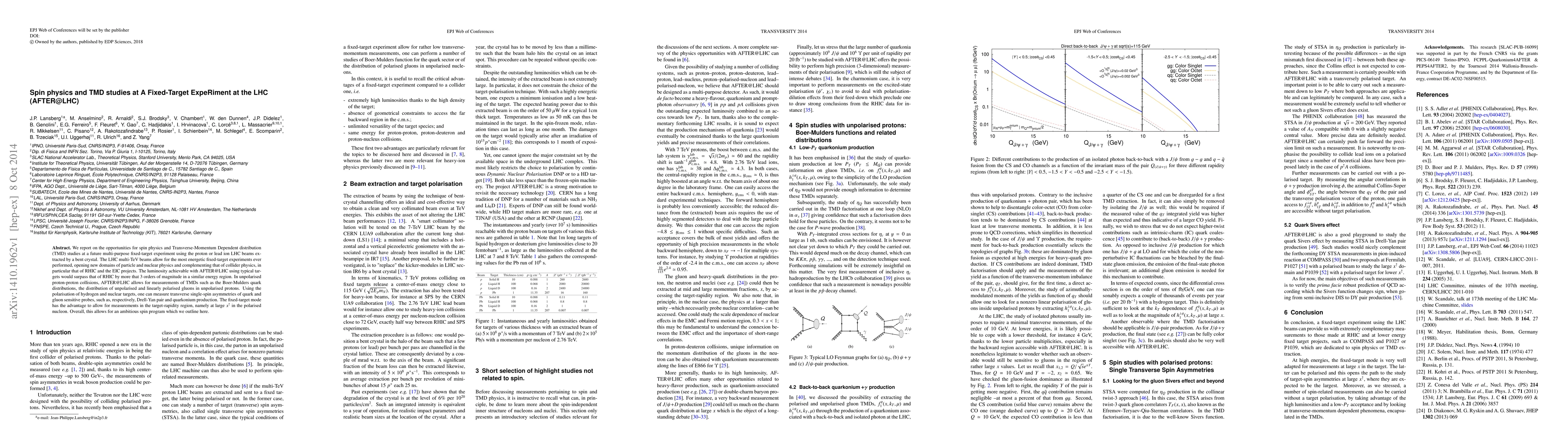 We report on the opportunities for spin physics and Transverse-Momentum Dependent distribution (TMD) studies at a future multi-purpose fixed-target experiment using the proton or lead ion LHC beams extracted by a bent crystal. The LHC multi-TeV beams allow for the most energetic fixed-target experiments ever performed, opening new domains of particle and nuclear physics and complementing that of collider physics, in particular that of RHIC and the EIC projects. The luminosity achievable with AFTER@LHC using typical targets would surpass that of RHIC by more that 3 orders of magnitude in a similar energy region. In unpolarised proton-proton collisions, AFTER@LHC allows for measurements of TMDs such as the Boer-Mulders quark distributions, the distribution of unpolarised and linearly polarised gluons in unpolarised protons. Using the polarisation of hydrogen and nuclear targets, one can measure transverse single-spin asymmetries of quark and gluon sensitive probes, such as, respectively, Drell-Yan pair and quarkonium production. The fixed-target mode has the advantage to allow for measurements in the target-rapidity region, namely at large x^uparrow in the polarised nucleon. Overall, this allows for an ambitious spin program which we outline here.