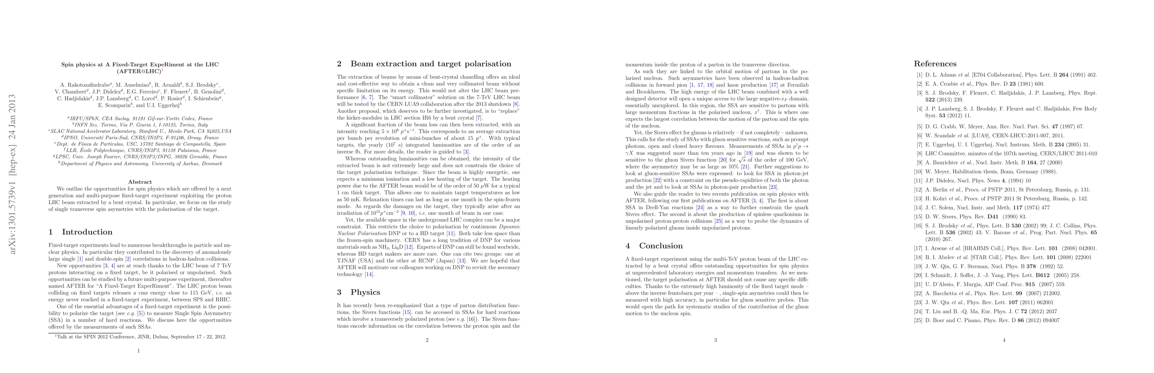 Summary: The AFTER@LHC experiment aims to explore spin physics using a fixed-target setup with the LHC proton beam, focusing on single transverse spin asymmetries through polarized targets to advance our understanding of particle interactions.