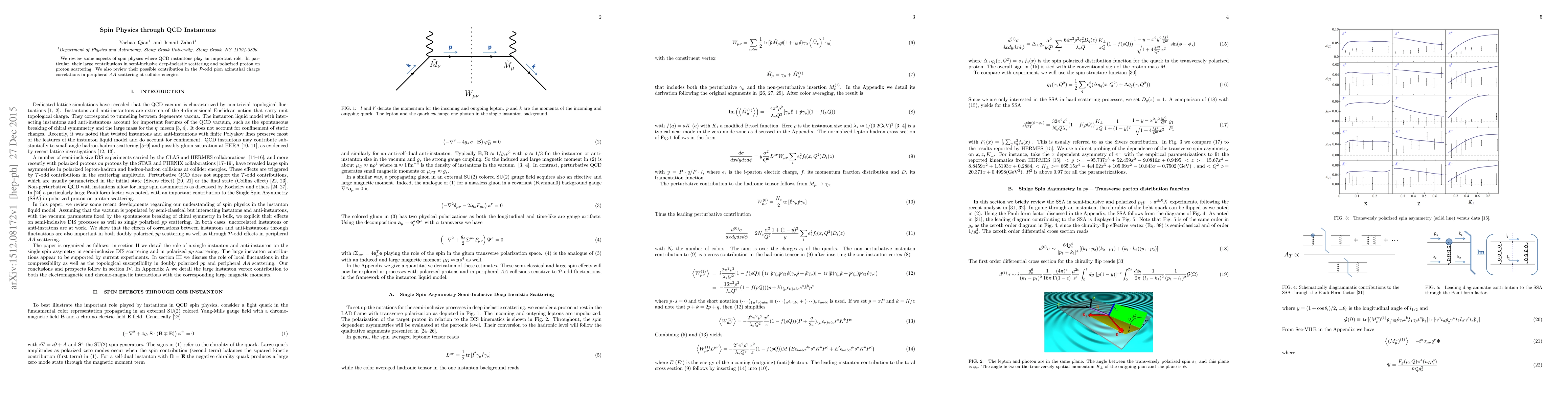 The paper presents a comprehensive review of instanton-induced effects in spin physics, including detailed calculations for Double Spin Asymmetry (DSA) in various scattering processes and predictions for charge-dijet production in peripheral AA collisions at collider energies.