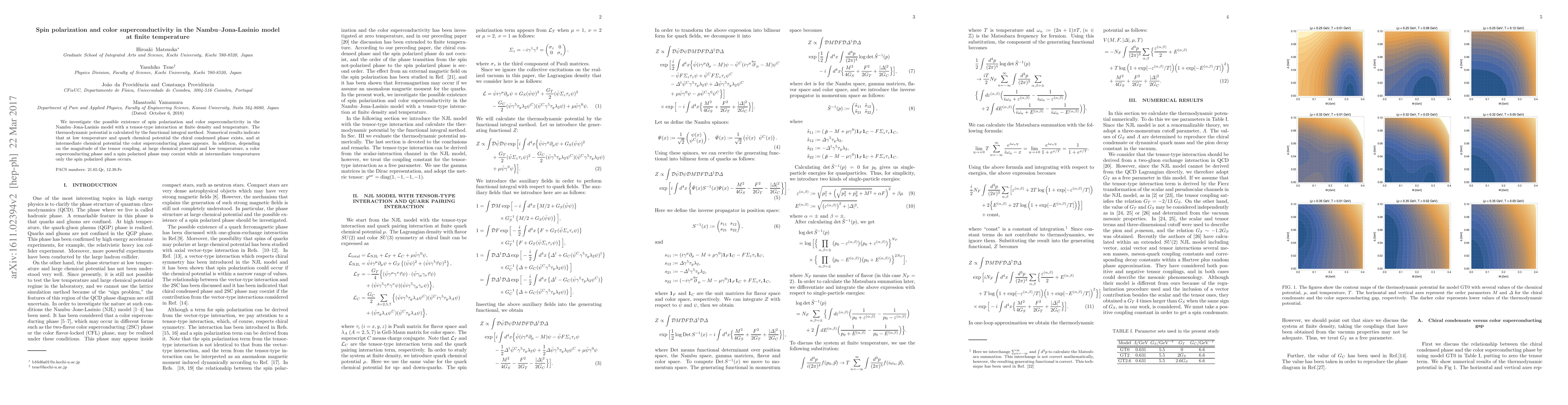 This paper explores the Nambu-Jona-Lasinio model to study spin polarization and color superconductivity at finite temperature and density. It finds that chiral condensation and color superconductivity phases exist under specific conditions, with a potential coexistence of spin polarization and color superconductivity in certain parameter regimes.