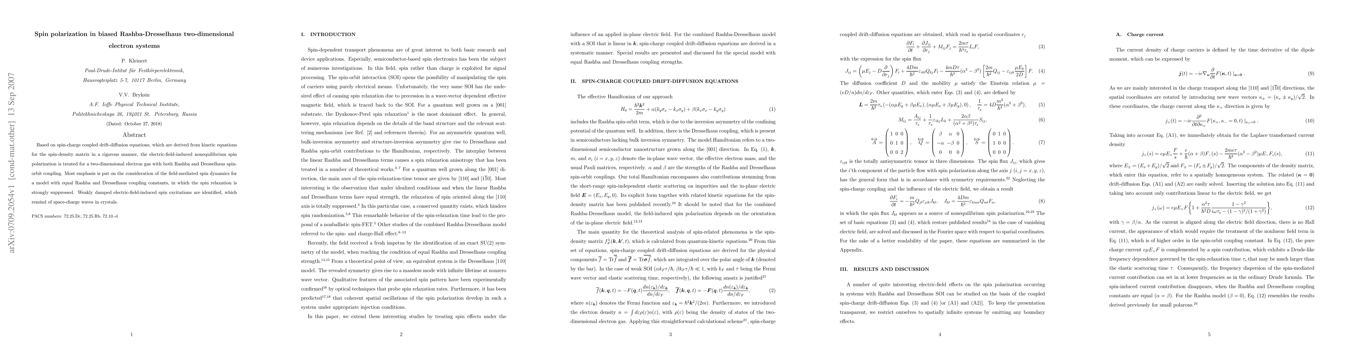 The study investigates electric-field-induced spin polarization in a two-dimensional electron gas with both Rashba and Dresselhaus spin-orbit couplings, focusing on a scenario with equal coupling constants where spin relaxation is significantly reduced. The research identifies weakly damped spin excitations akin to space-charge waves in crystals.