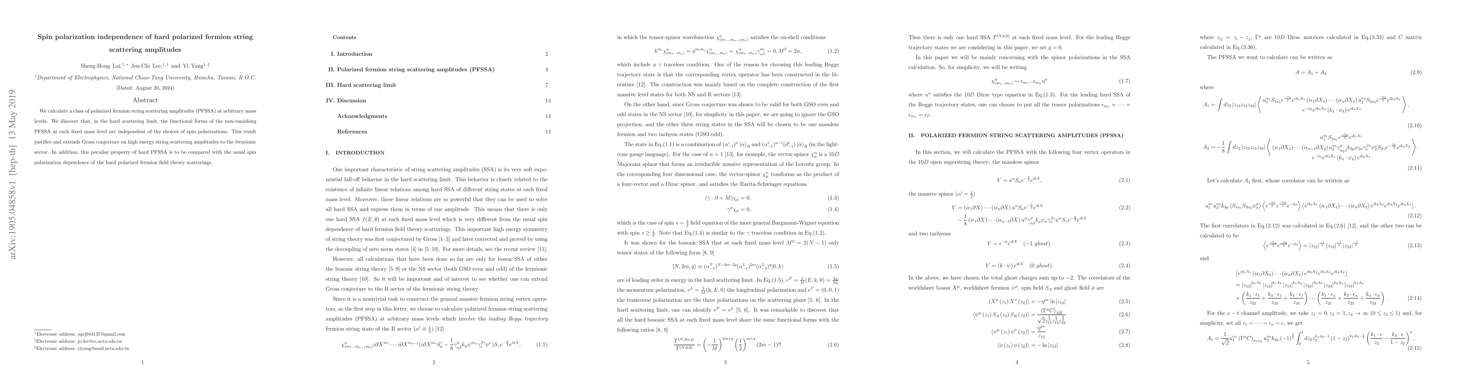 This paper calculates polarized fermion string scattering amplitudes and finds that, in the hard scattering limit, these amplitudes' functional forms are independent of spin polarizations, extending Gross' conjecture to the fermionic sector. This contrasts with typical spin polarization dependence in fermion field theory scatterings.