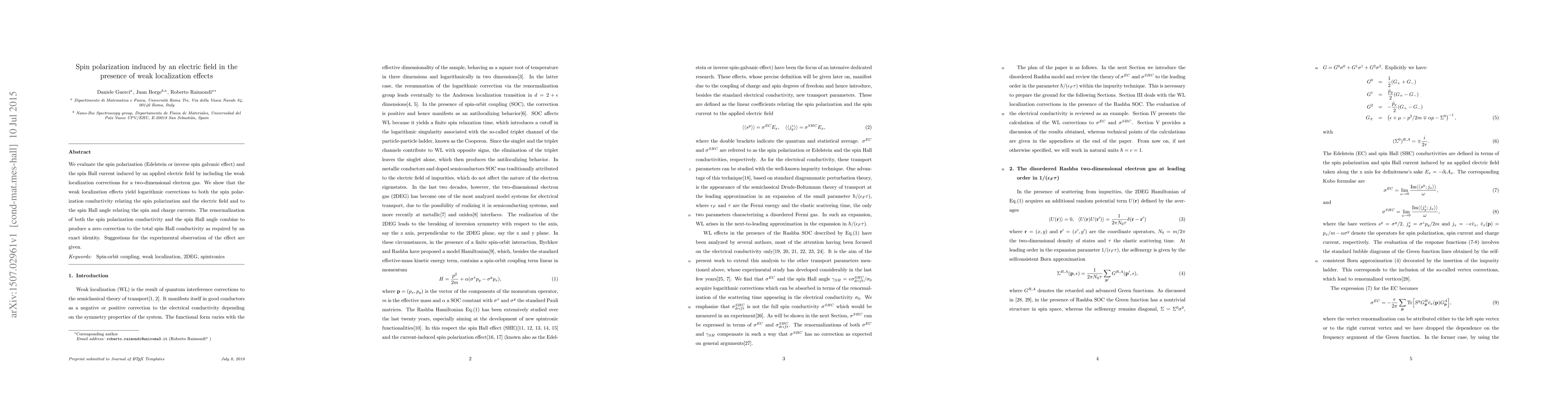 We evaluate the spin polarization (Edelstein or inverse spin galvanic effect) and the spin Hall current induced by an applied electric field by including the weak localization corrections for a two-dimensional electron gas. We show that the weak localization effects yield logarithmic corrections to both the spin polarization conductivity relating the spin polarization and the electric field and to the spin Hall angle relating the spin and charge currents. The renormalization of both the spin polarization conductivity and the spin Hall angle combine to produce a zero correction to the total spin Hall conductivity as required by an exact identity. Suggestions for the experimental observation of the effect are given.