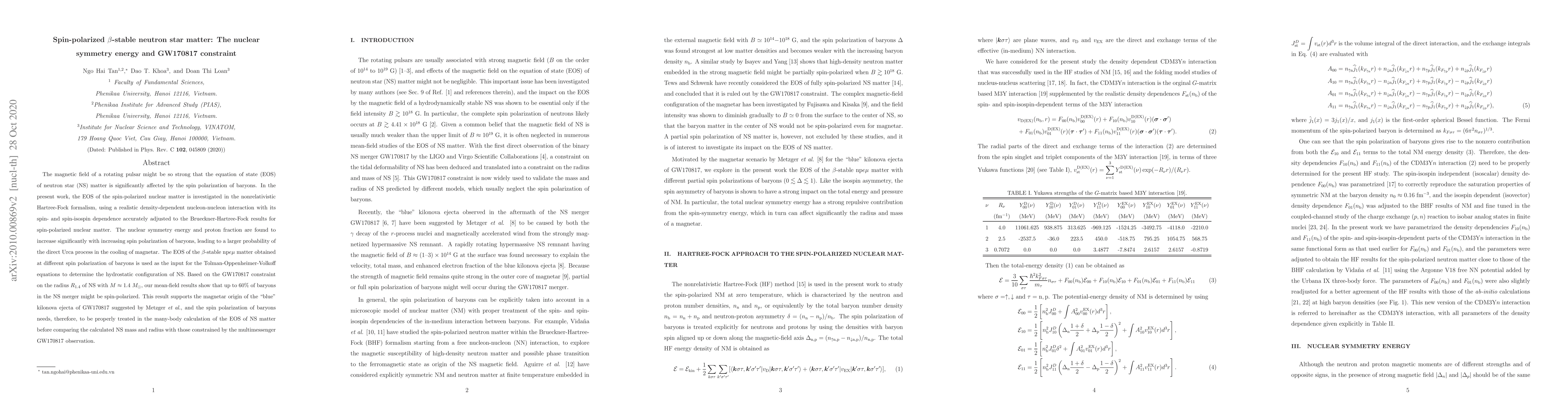 This paper investigates the equation of state (EOS) for spin-polarized neutron star matter using the nonrelativistic Hartree-Fock formalism, finding that spin polarization significantly affects the nuclear symmetry energy and proton fraction. The study supports the magnetar origin of GW170817's blue kilonova ejecta, suggesting up to 60% of baryons in neutron stars may be spin-polarized.