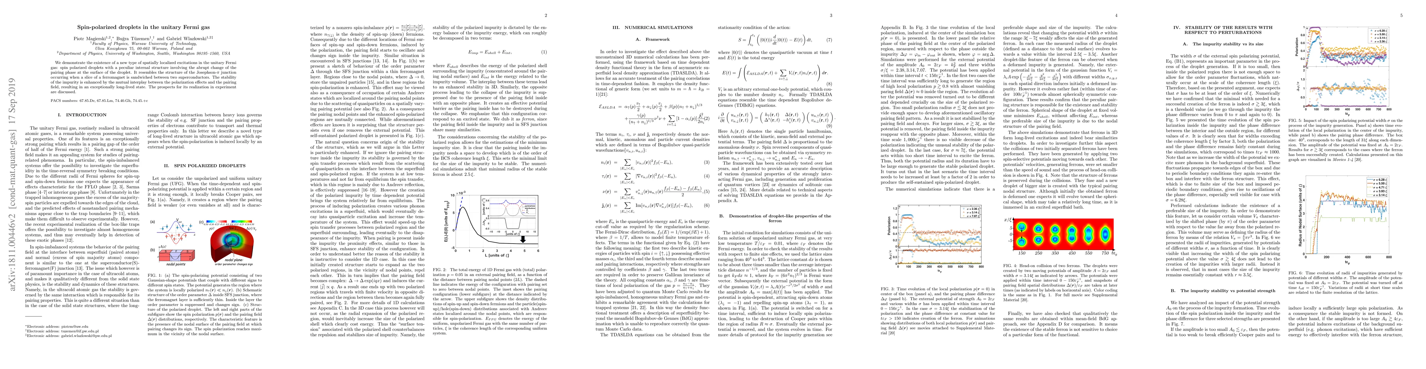 We demonstrate the existence of a new type of spatially localized excitations in the unitary Fermi gas: spin polarized droplets with a peculiar internal structure involving the abrupt change of the pairing phase at the surface of the droplet. It resembles the structure of the Josephson-$\pi$ junction occurring when a slice of a ferromagnet is sandwiched between two superconductors. The stability of the impurity is enhanced by the mutual interplay between the polarization effects and the pairing field, resulting in an exceptionally long-lived state. The prospects for its realization in experiment are discussed.