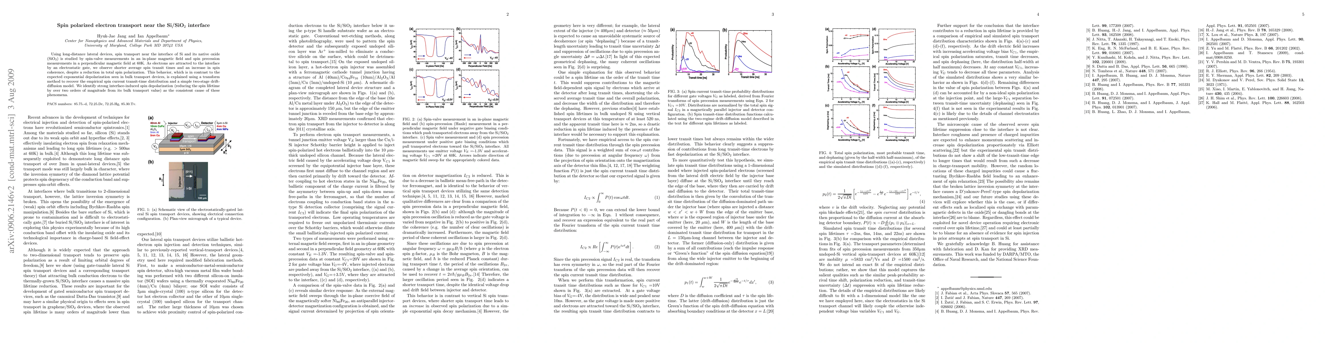 Using long-distance lateral devices, spin transport near the interface of Si and its native oxide (SiO2) is studied by spin-valve measurements in an in-plane magnetic field and spin precession measurements in a perpendicular magnetic field at 60K. As electrons are attracted to the interface by an electrostatic gate, we observe shorter average spin transit times and an increase in spin coherence, despite a reduction in total spin polarization. This behavior, which is in contrast to the expected exponential depolarization seen in bulk transport devices, is explained using a transform method to recover the empirical spin transit-time distribution and a simple two-stage drift-diffusion model. We identify strong interface-induced spin depolarization (reducing the spin lifetime by over two orders of magnitude from its bulk transport value) as the consistent cause of these phenomena.