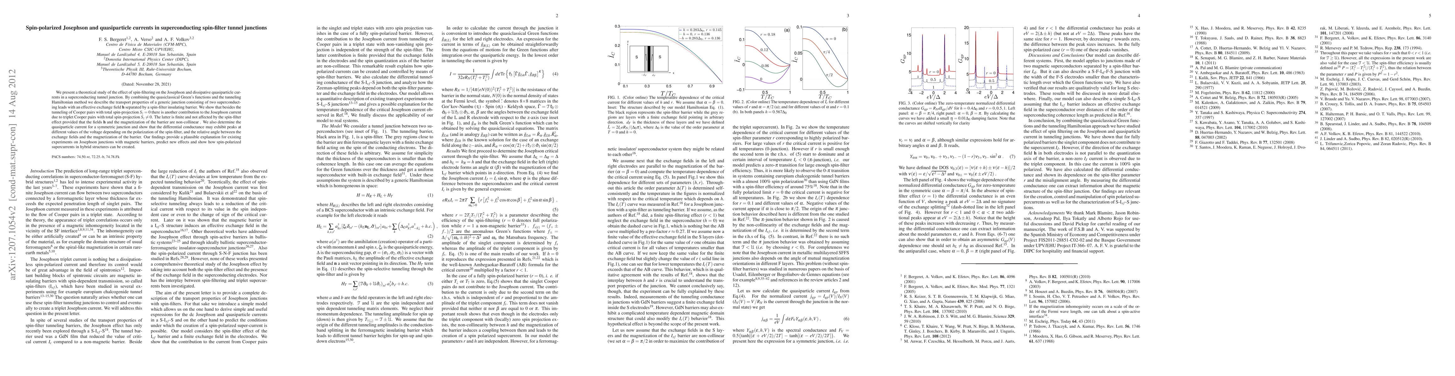 This paper theoretically investigates spin-filtering effects on Josephson and quasiparticle currents in superconducting spin-filter tunnel junctions, revealing a non-zero Josephson current from equal-spin Cooper pairs and voltage-dependent conductance peaks influenced by spin polarization and field angles.