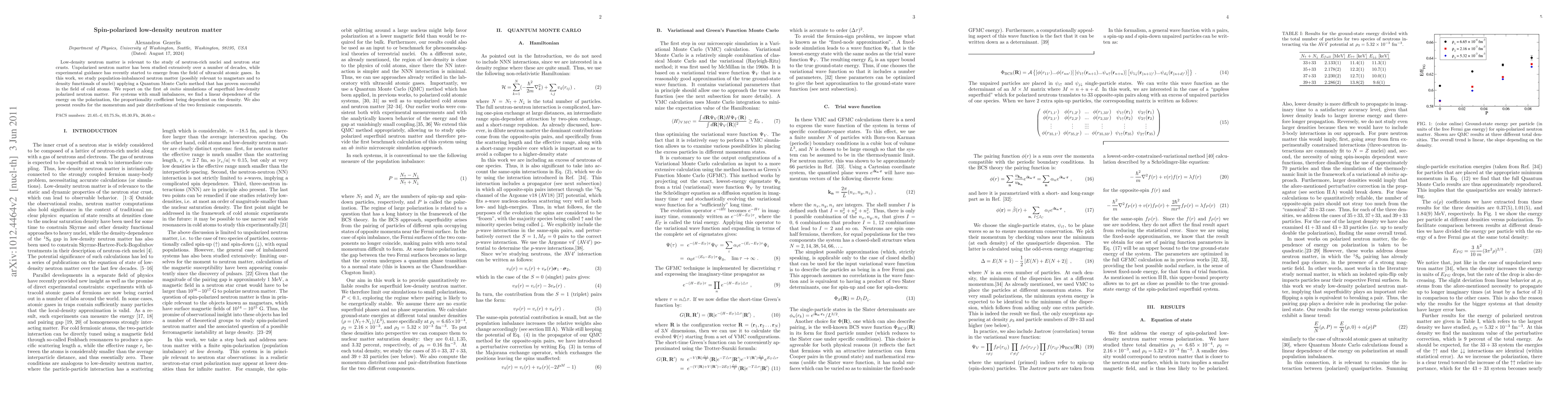 This paper investigates spin-polarized low-density neutron matter using Quantum Monte Carlo simulations, focusing on its relevance to neutron-rich nuclei and neutron star crusts. The study reports the first ab initio simulations of superfluid polarized neutron matter, revealing a linear energy dependence on polarization with density-dependent proportionality.