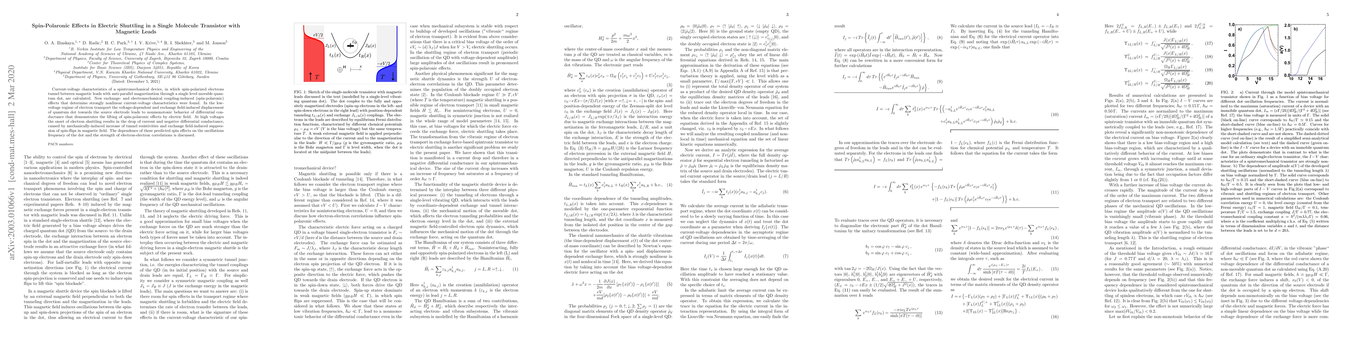 This paper investigates spin-polaronic effects in a single molecule transistor with magnetic leads, revealing strong nonlinear current-voltage characteristics due to exchange- and electromechanical coupling. At low voltages, electric field-induced displacement of the quantum dot causes nonmonotonic differential conductance, while high voltages lead to electron shuttling, resulting in negative differential conductance.