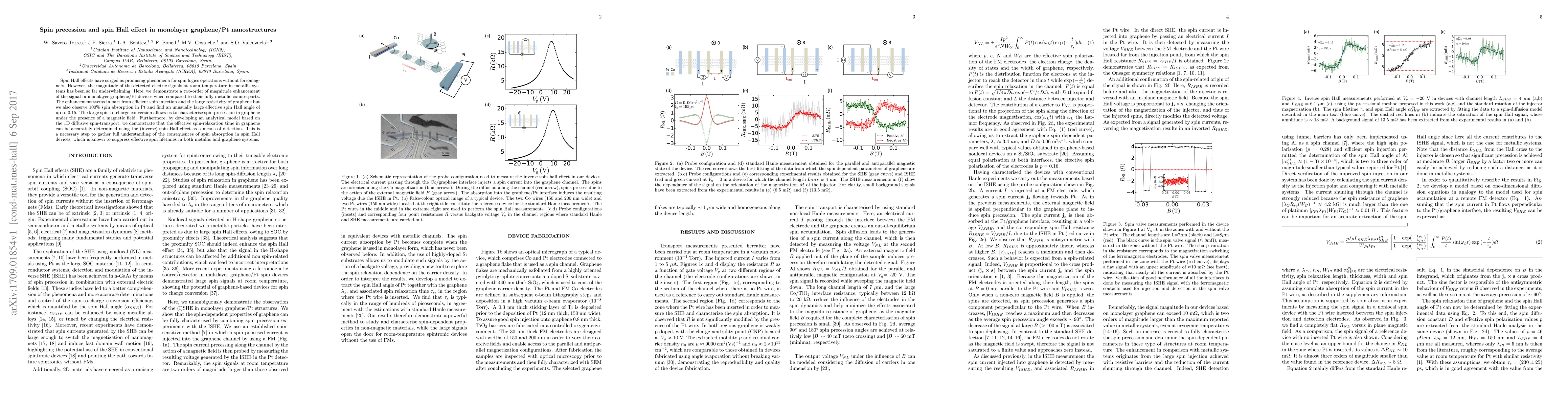 This paper demonstrates a significant enhancement in spin Hall effects in monolayer graphene/Pt nanostructures, attributing the improvement to efficient spin injection and large resistivity of graphene. The study also reveals 100% spin absorption in Pt and a high effective spin Hall angle, enabling characterization of spin precession in graphene under magnetic fields.