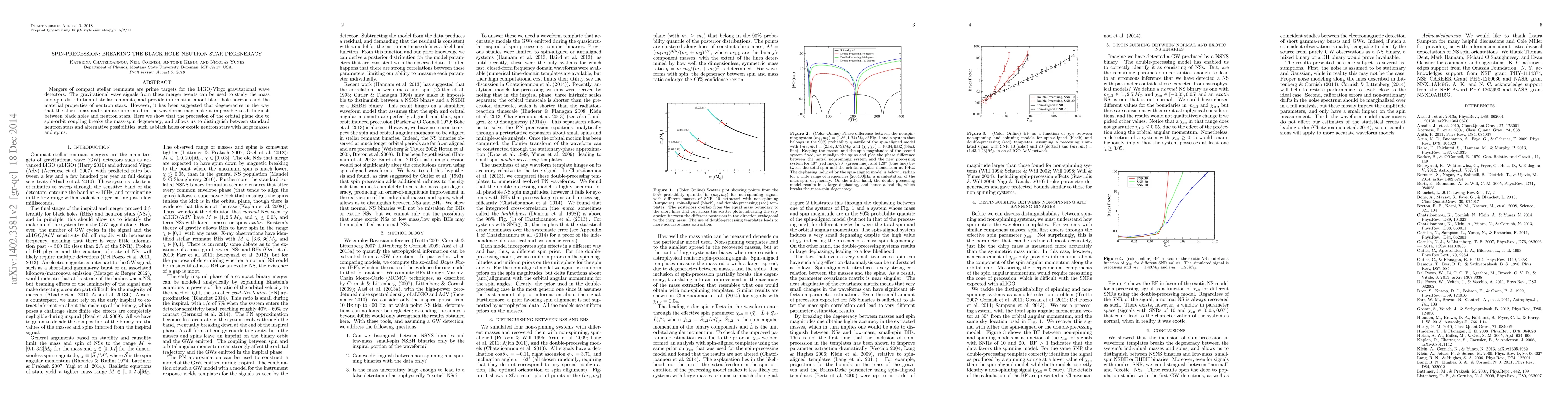 This research demonstrates that spin-precession caused by spin-orbit coupling can break the mass-spin degeneracy in black hole-neutron star mergers, enabling distinction between standard neutron stars and alternatives like black holes or exotic neutron stars with large masses and spins.