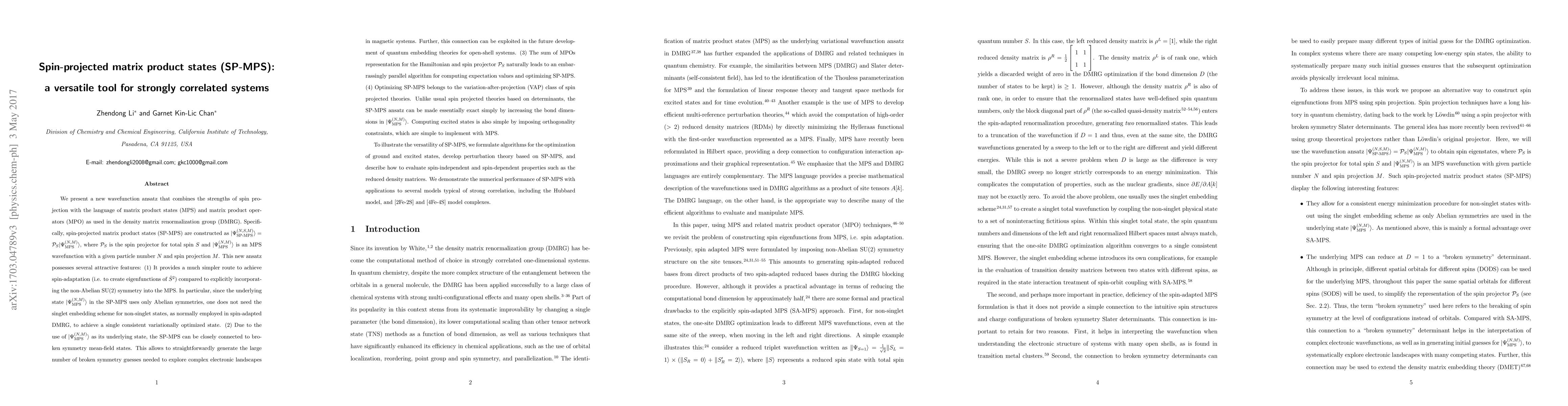 Researchers introduce a new method called Spin-projected matrix product states (SP-MPS) to simplify calculations in strongly correlated systems, offering a simpler route to achieve spin-adaptation and connections to broken symmetry mean-field states.