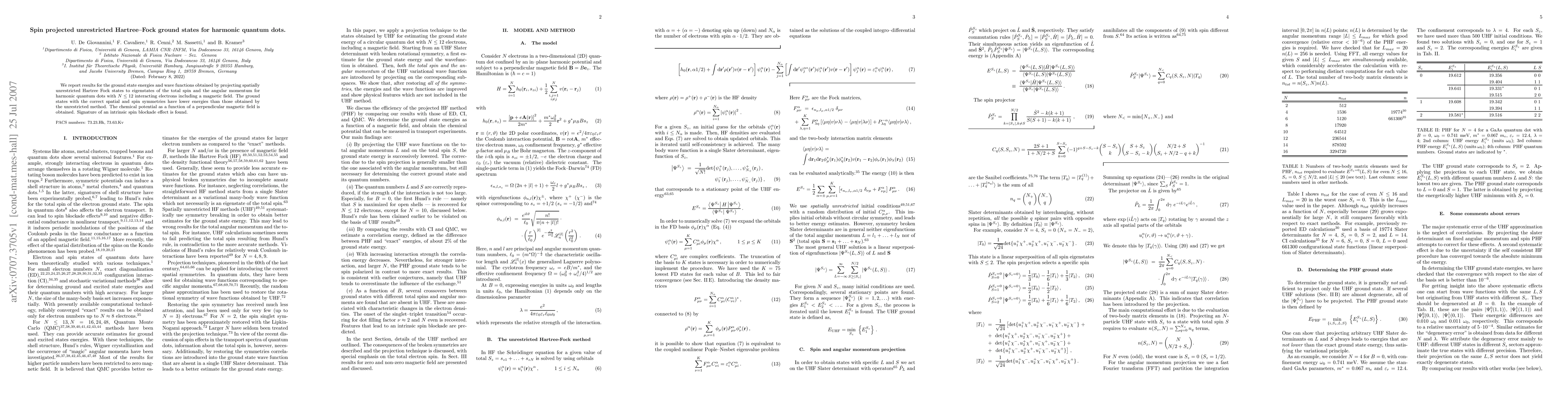 We report results for the ground state energies and wave functions obtained by projecting spatially unrestricted Hartree Fock states to eigenstates of the total spin and the angular momentum for harmonic quantum dots with $N\leq 12$ interacting electrons including a magnetic field states with the correct spatial and spin symmetries have lower energies than those obtained by the unrestricted method. The chemical potential as a function of a perpendicular magnetic field is obtained. Signature of an intrinsic spin blockade effect is found.