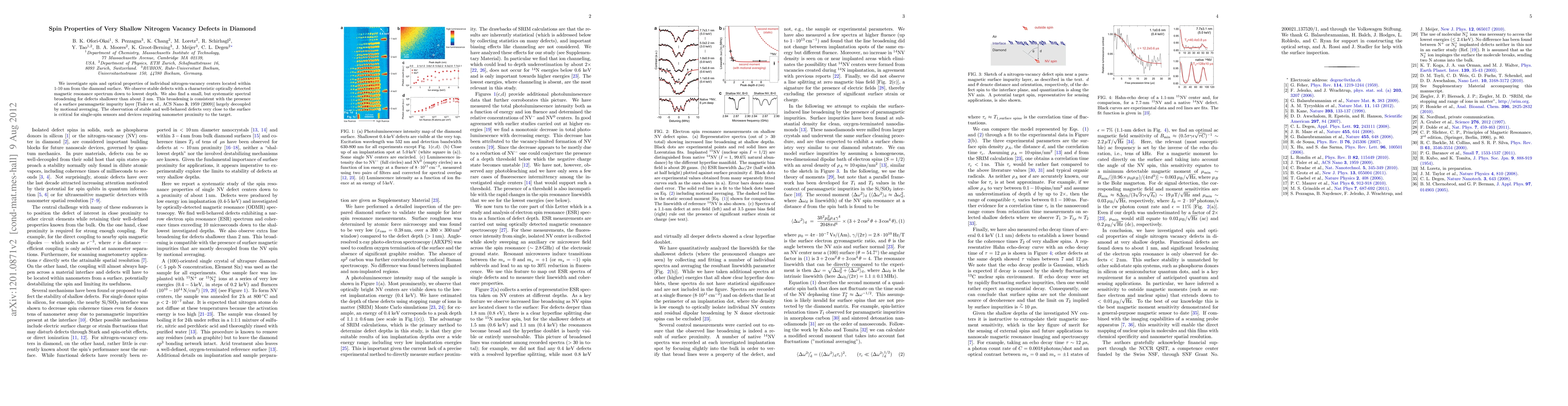 This study examines the spin and optical properties of nitrogen-vacancy centers in diamond near the surface (1-10 nm). It finds stable defects with consistent optically detected magnetic resonance, though shallower defects (<2 nm) exhibit systematic spectral broadening likely due to surface paramagnetic impurities.
