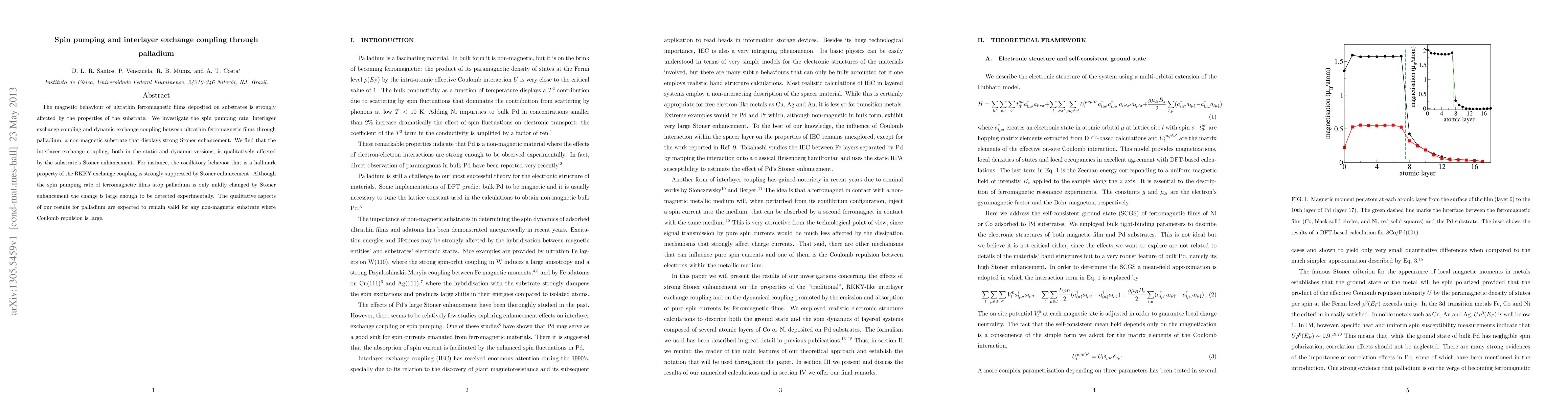 The paper presents a detailed theoretical analysis of spin pumping and interlayer exchange coupling, incorporating Stoner enhancement in the Pd substrate, using a realistic model for electronic structures.