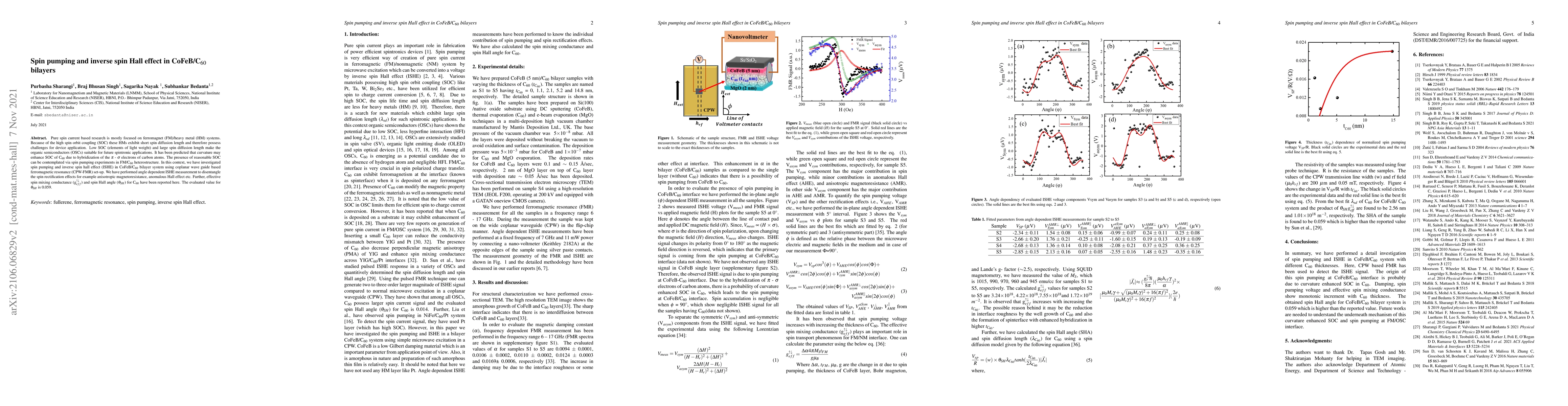 Pure spin current based research is mostly focused on ferromagnet (FM)/heavy metal (HM) system. Because of the high spin orbit coupling (SOC) these HMs exhibit short spin diffusion length and therefore possess challenges for device application. Low SOC (elements of light weight) and large spin diffusion length make the organic semiconductors (OSCs) suitable for future spintronic applications. From theoretical model it is explained that, due to $\pi$ - $\sigma$ hybridization the curvature of the C$_{60}$ molecules may increase the SOC strength. Here, we have investigated spin pumping and inverse spin hall effect (ISHE) in CoFeB/C$_{60}$ bilayer system using coplanar wave guide based ferromagnetic resonance (CPW-FMR) set-up. We have performed angle dependent ISHE measurement to disentangle the spin rectification effects for example anisotropic magnetoresistance, anomalous Hall effect etc. Further, effective spin mixing conductance (g$_{eff}^{\uparrow\downarrow}$) and spin Hall angle ($\theta_{SH}$) for C$_{60}$ have been reported here. The evaluated value for $\theta_{SH}$ is 0.055.