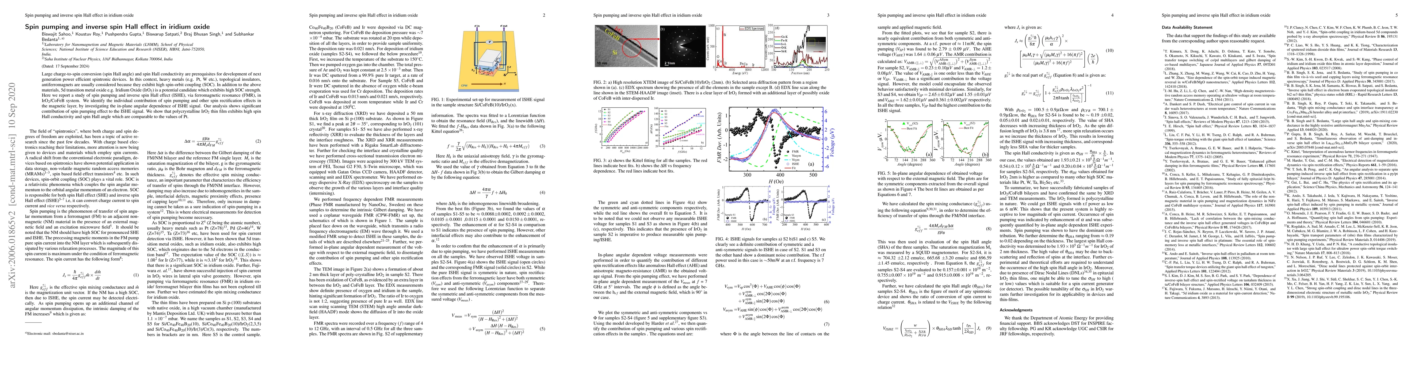 This study investigates spin pumping and the inverse spin Hall effect in an IrO₂/CoFeB system, highlighting the high spin-orbit coupling strength in 5d transition metal oxides. Results indicate significant spin pumping contribution to the inverse spin Hall effect and comparable spin Hall conductivity and angle values to platinum.