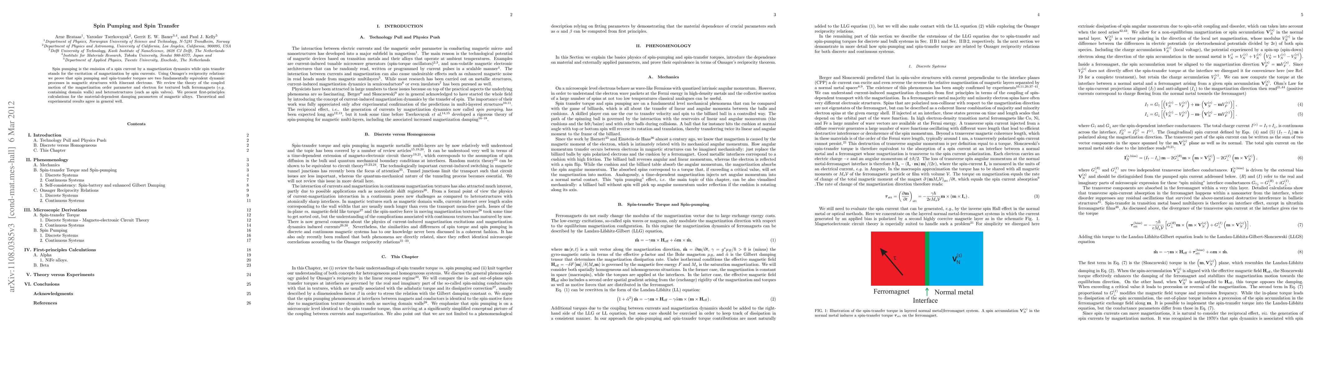 Spin pumping is the emission of a spin current by a magnetization dynamics while spin transfer stands for the excitation of magnetization by spin currents. Using Onsager's reciprocity relations we prove that spin pumping and spin-transfer torques are two fundamentally equivalent dynamic processes in magnetic structures with itinerant electrons. We review the theory of the coupled motion of the magnetization order parameter and electron for textured bulk ferromagnets (e.g. containing domain walls) and heterostructures (such as spin valves). We present first-principles calculations for the material-dependent damping parameters of magnetic alloys. Theoretical and experimental results agree in general well.