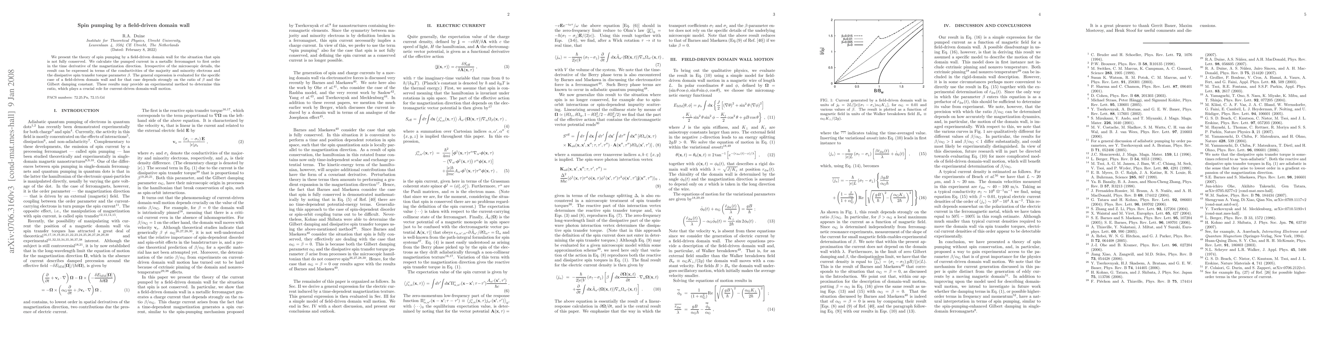 Researchers calculated the charge current in a metallic ferromagnet due to spin pumping caused by domain wall movement, revealing its dependence on conductivity and non-adiabatic spin transfer torque parameter beta.