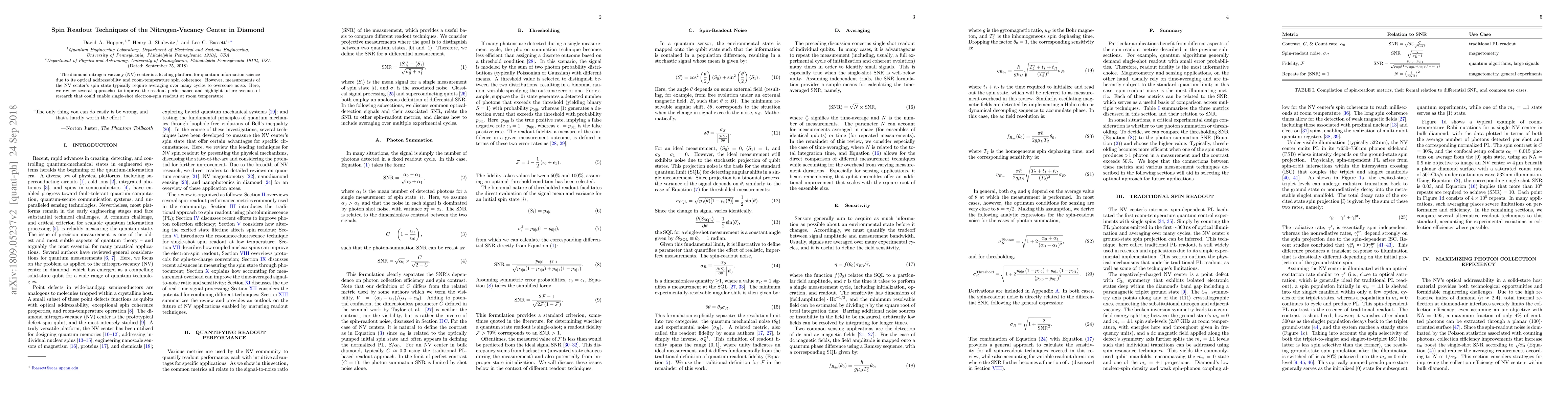 This paper reviews various techniques for enhancing the readout performance of nitrogen-vacancy (NV) centers in diamond, aiming to achieve single-shot electron-spin readout at room temperature, and discusses potential future research directions.