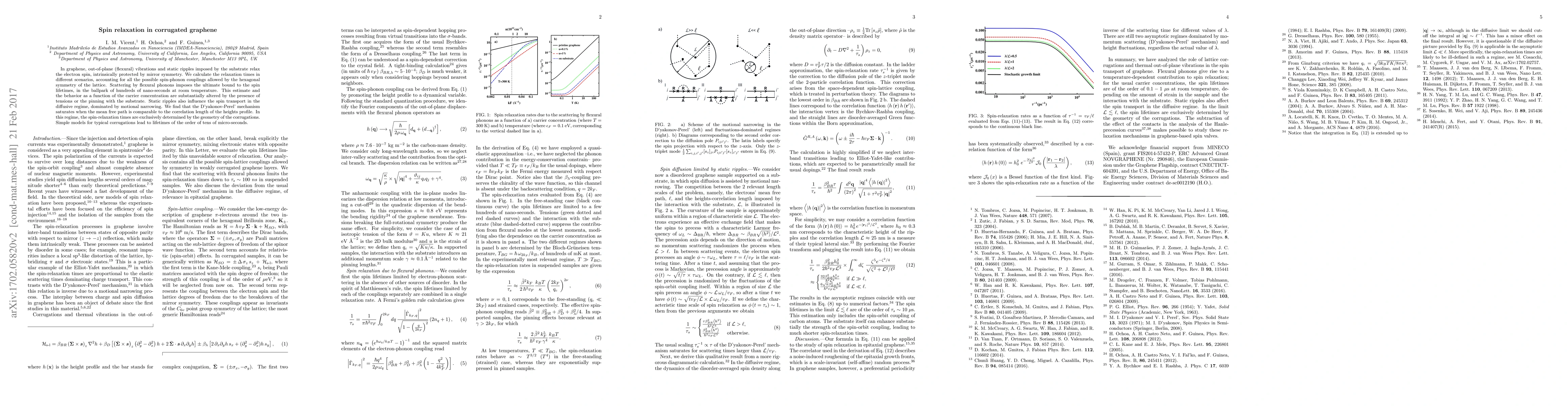 In graphene, out-of-plane (flexural) vibrations and static ripples imposed by the substrate relax the electron spin, intrinsically protected by mirror symmetry. We calculate the relaxation times in different scenarios, accounting for all the possible spin-phonon couplings allowed by the hexagonal symmetry of the lattice. Scattering by flexural phonons imposes the ultimate bound to the spin lifetimes, in the ballpark of hundreds of nano-seconds at room temperature. This estimate and the behavior as a function of the carrier concentration are substantially altered by the presence of tensions or the pinning with the substrate. Static ripples also influence the spin transport in the diffusive regime, dominated by motional narrowing. We find that the D'yakonov-Perel' mechanism saturates when the mean free path is comparable to the correlation length of the heights profile. In this regime, the spin-relaxation times are exclusively determined by the geometry of the corrugations. Simple models for typical corrugations lead to lifetimes of the order of tens of micro-seconds.