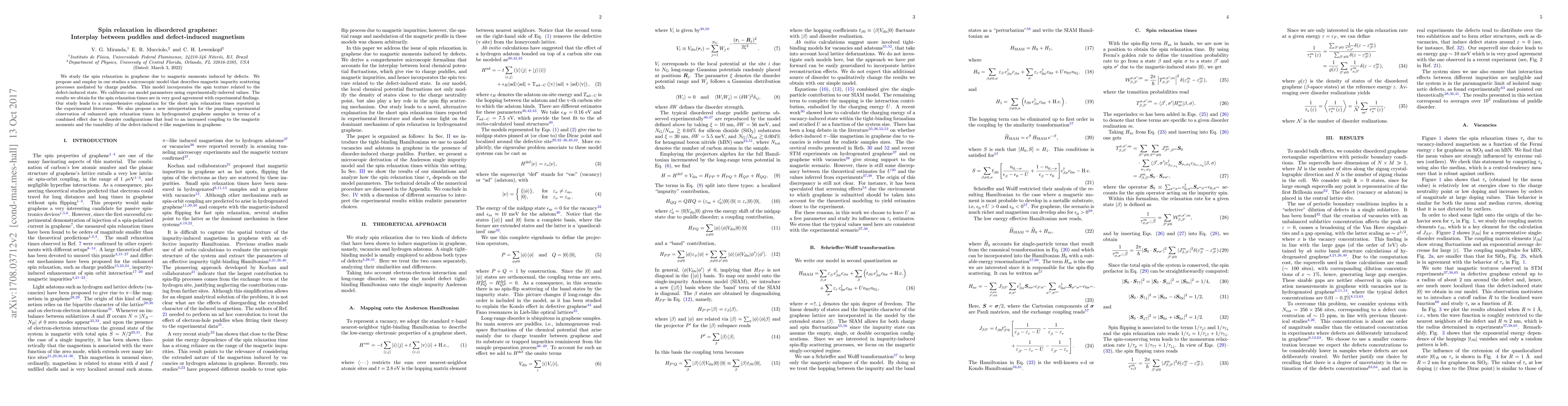 This study explores spin relaxation in disordered graphene, attributing short relaxation times to defect-induced magnetism and puddle-mediated magnetic impurity scattering. The proposed microscopic model, calibrated with experimental data, aligns well with observed spin relaxation times and offers a new interpretation for enhanced relaxation in hydrogenated graphene due to increased magnetic moment coupling and tunable $\pi$-like magnetism.