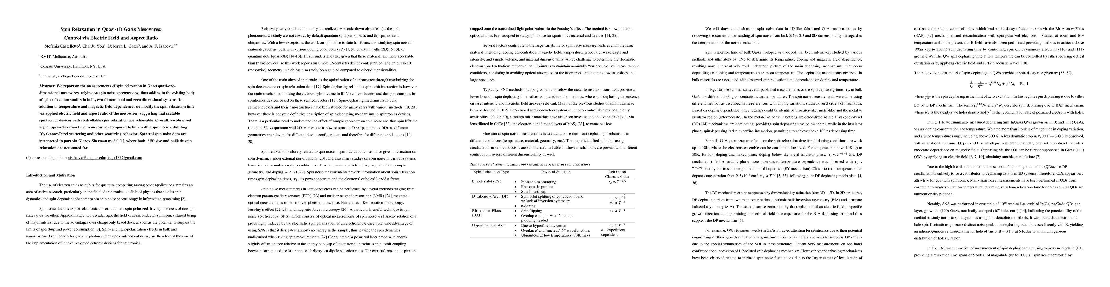 The research measures spin relaxation in GaAs quasi-1D mesowires using spin noise spectroscopy, finding higher relaxation times than in bulk GaAs. It demonstrates control over spin relaxation via electric field and wire aspect ratio, suggesting potential for scalable spintronics devices.