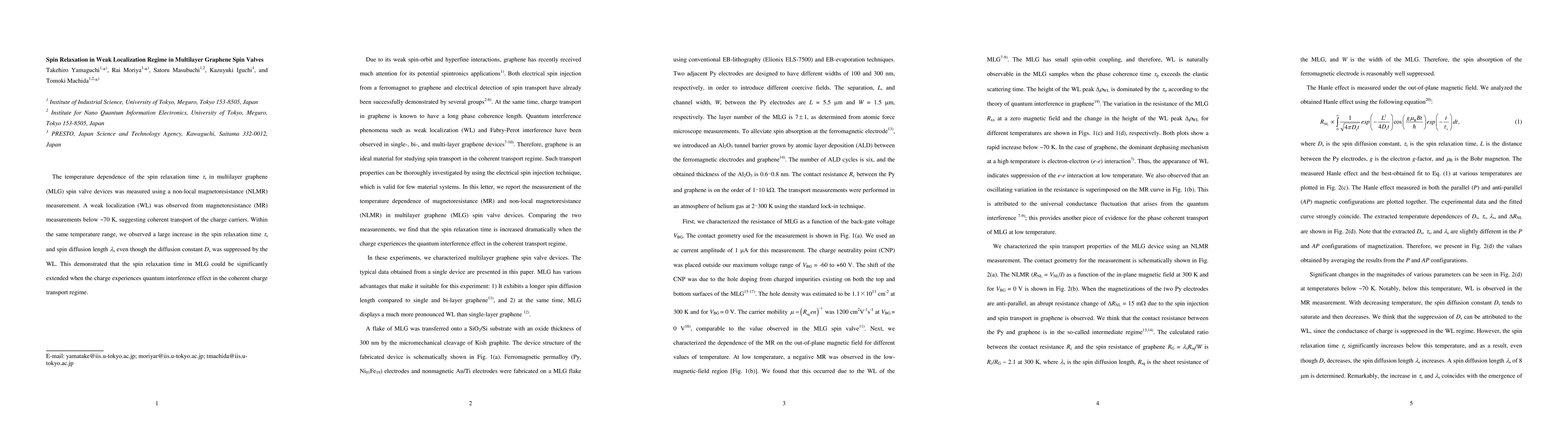 The temperature dependence of the spin relaxation time in multilayer graphene (MLG) spin valve devices was measured using a non-local magnetoresistance (NLMR) measurement. A weak localization (WL) was observed from magnetoresistance (MR) measurements below 70 K, suggesting coherent transport of the charge carriers. Within the same temperature range, we observed a large increase in the spin relaxation time and spin diffusion length even though the diffusion constant Ds was suppressed by the WL. This demonstrated that the spin relaxation time in MLG could be significantly extended when the charge experiences quantum interference effect in the coherent charge transport regime.