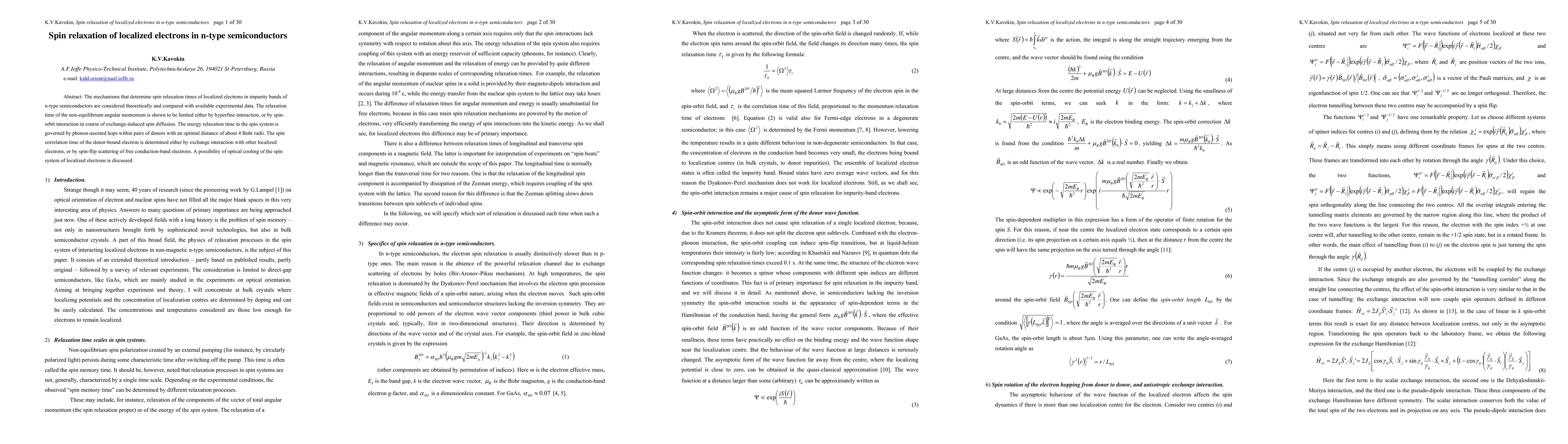 This paper theoretically investigates the mechanisms affecting spin relaxation times in localized electrons within n-type semiconductors, comparing these with experimental data. It concludes that spin relaxation is limited by hyperfine or spin-orbit interactions, and suggests phonon-assisted hops govern energy relaxation, while optical cooling of the spin system is feasible.